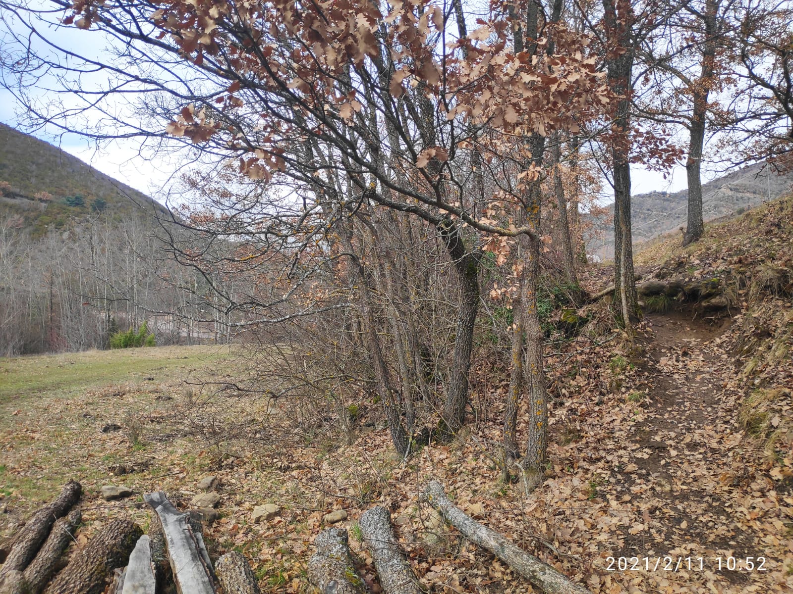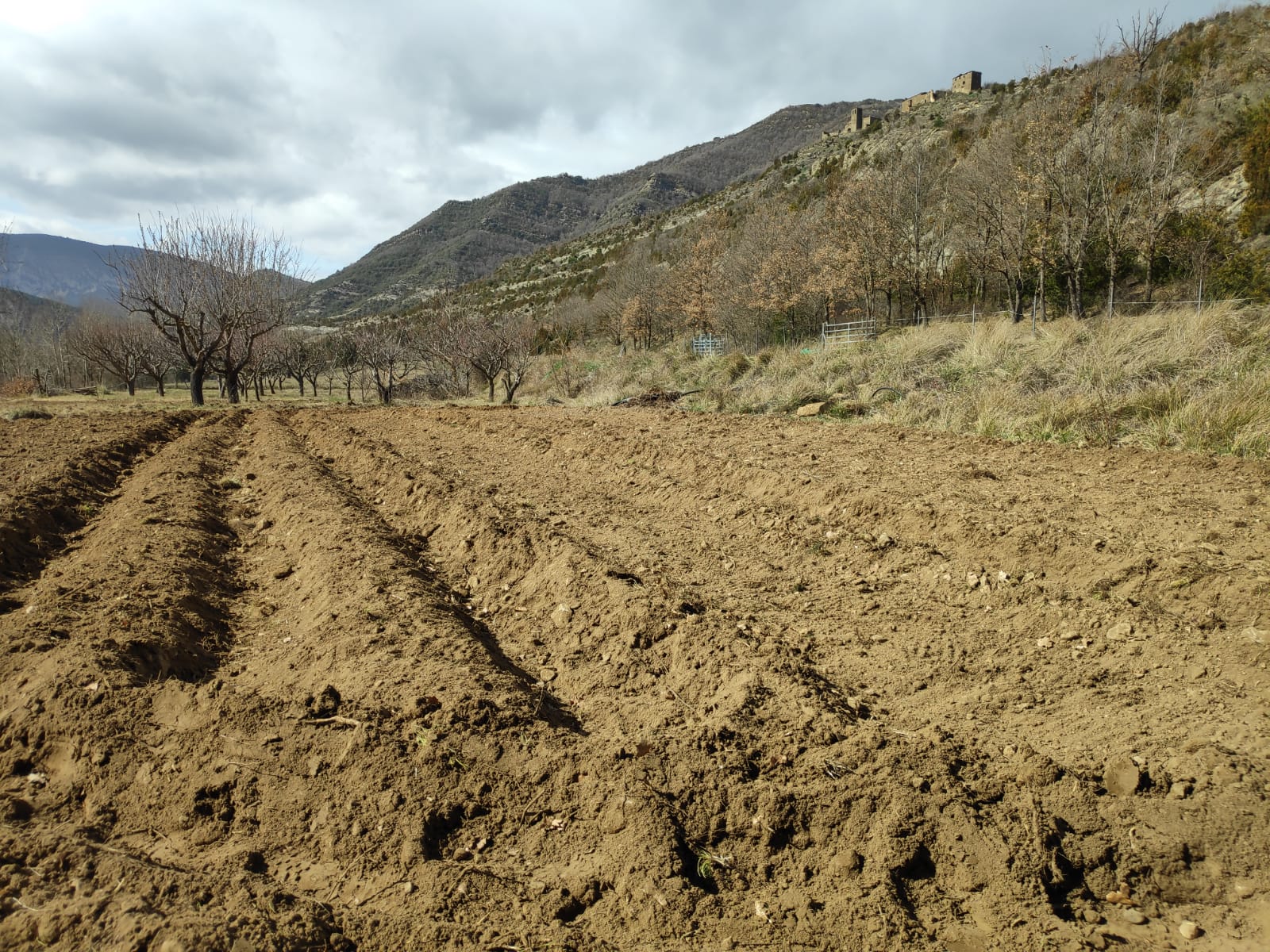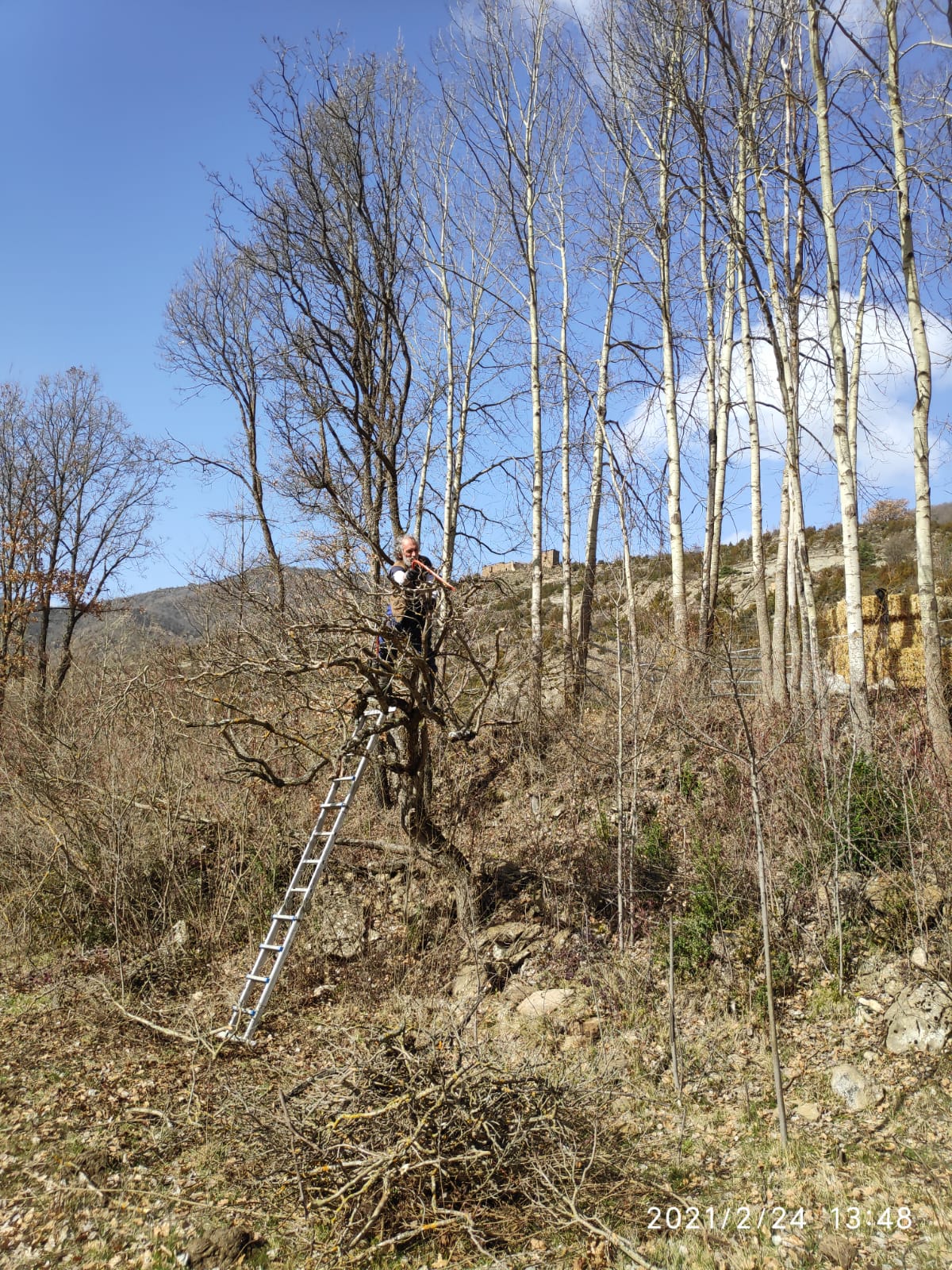 Aprovechamos esta época del año en la que todo parece estar en letargo, para desbrozar, para adecuar las zonas de cultivo y las zonas de paso para el tránsito del ganado, arreglando cercados y paredes de piedra. También trabajamos con los árboles haciendo acopio de leña, varas, utensilios de trabajo, además de estacas y algunos sencillos materiales de construcción.