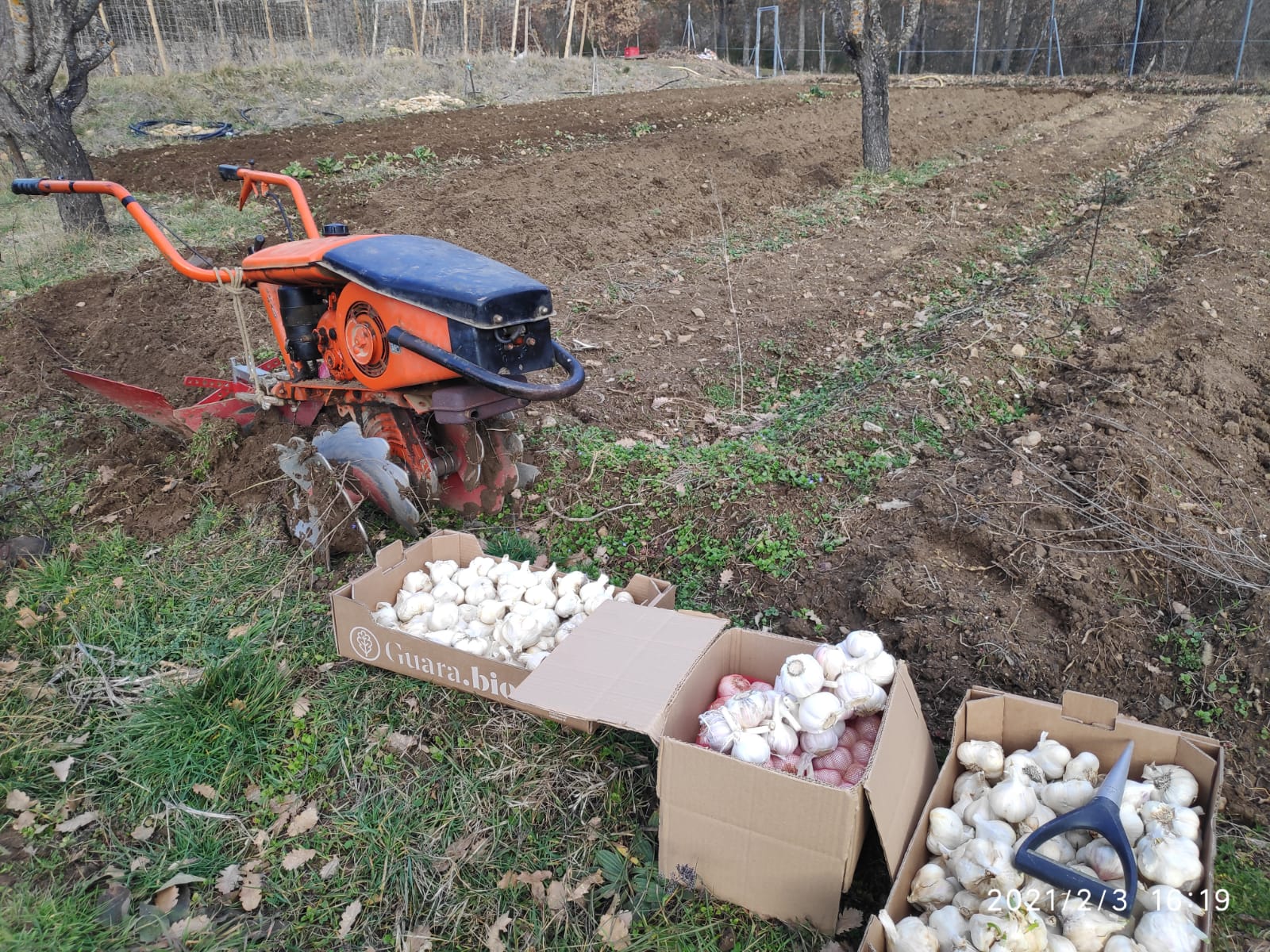 El huerto ya está limpio. Ya hemos sembrado y han comenzado a nacer las primeras plantas de ajo.