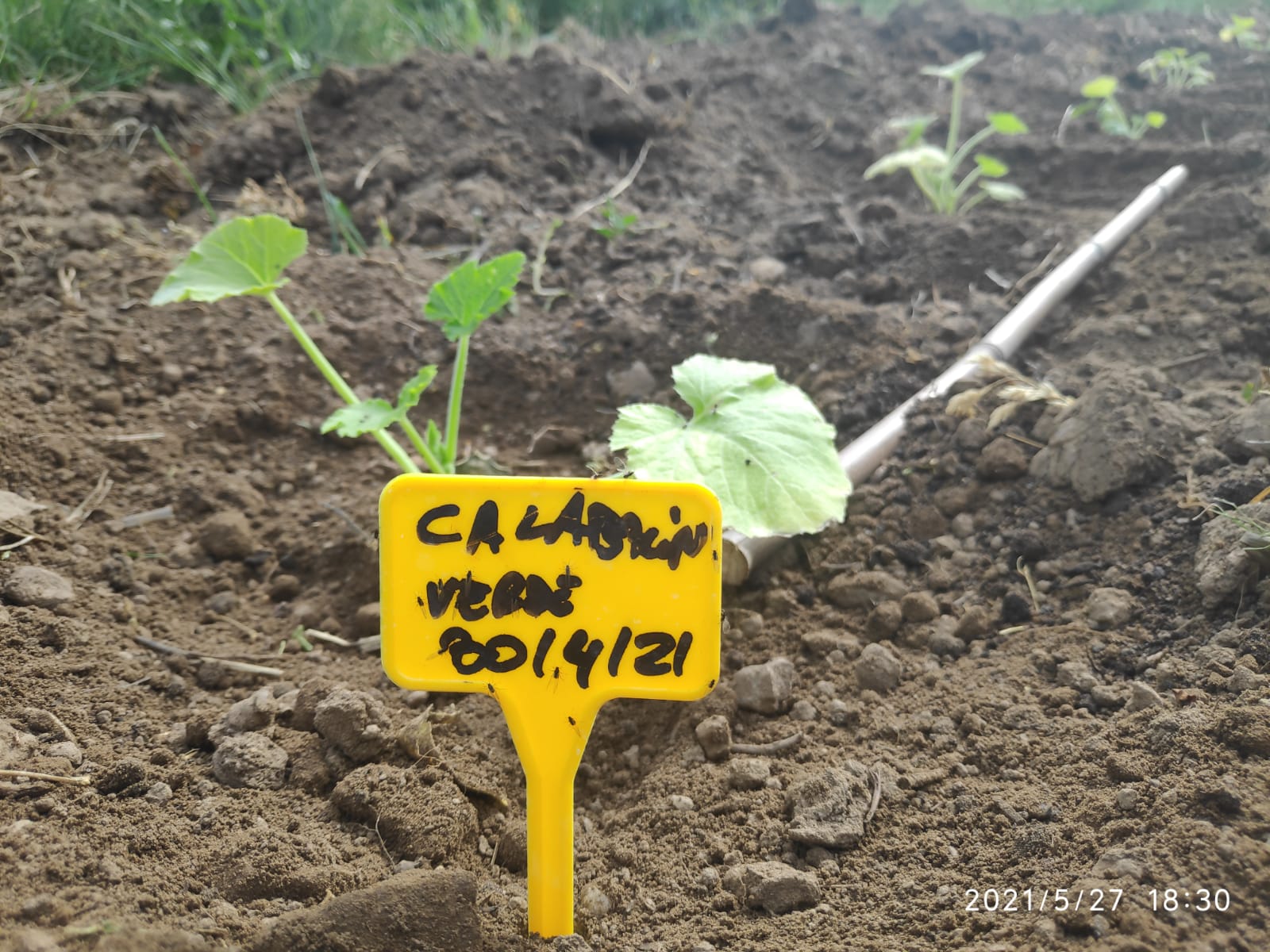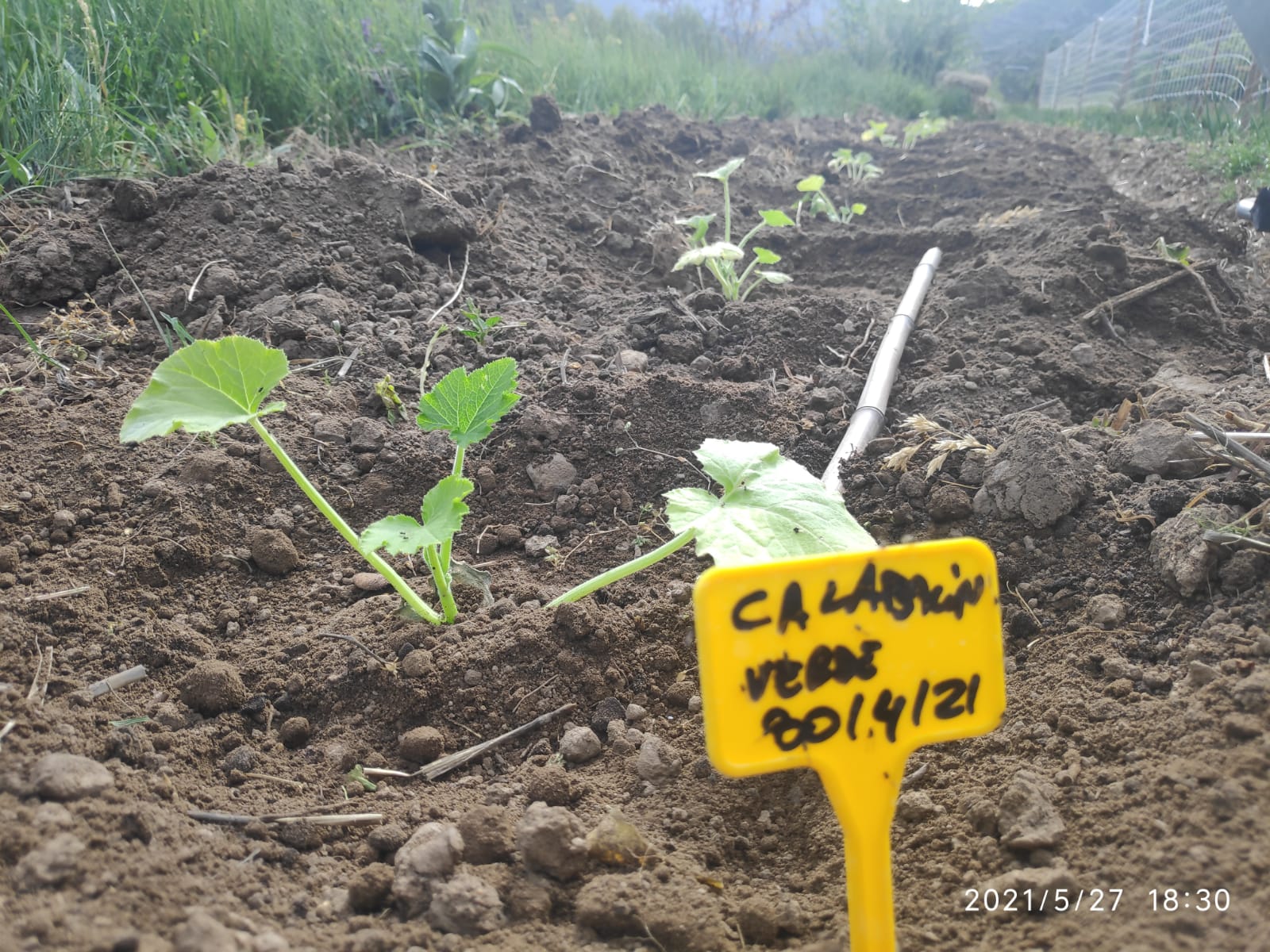 Este año plantamos calabacín verde y blanco de Panzano, pepino corto y tomate rosa de Rañín, además del sabroso tomate de Aretxableta.