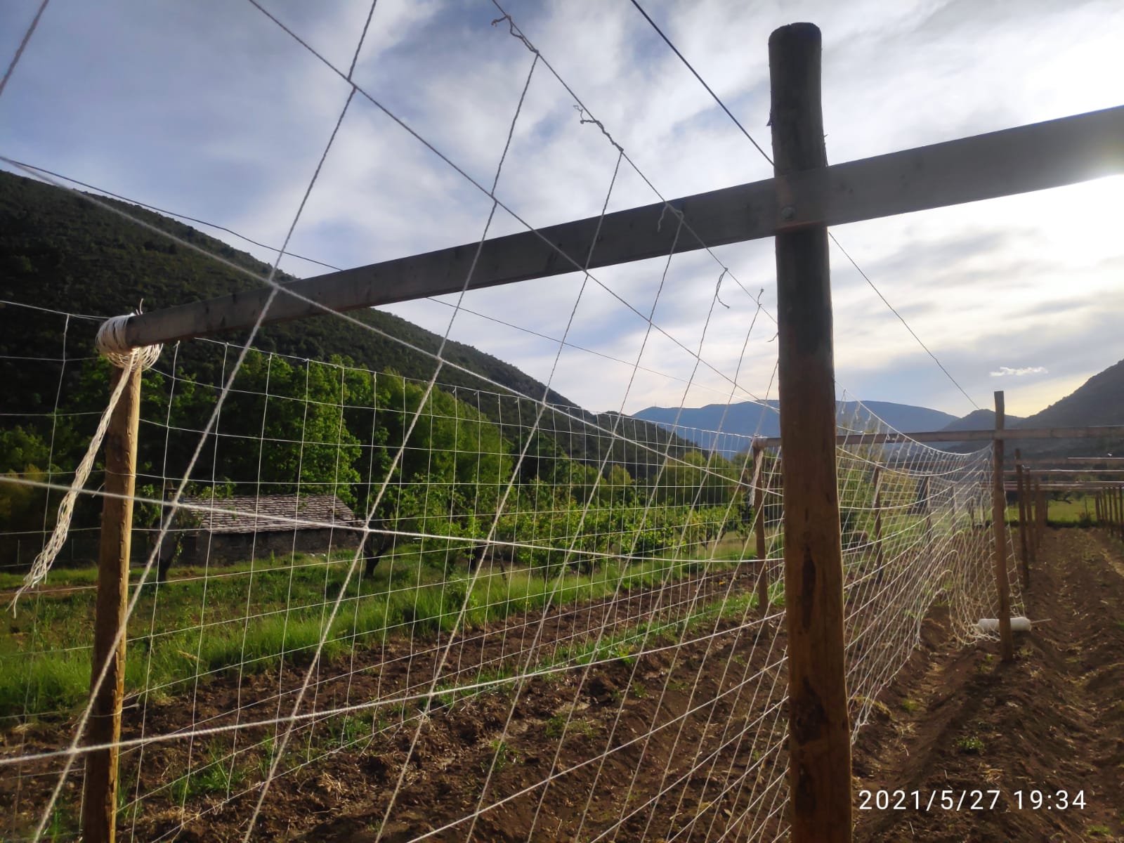 También sembramos boliche y judía verde tipo garrafal de oro, perona y limka, todas ecológicas de Álava. Para que puedan trepar y crecer a sus anchas, les colocamos redes de algodón.