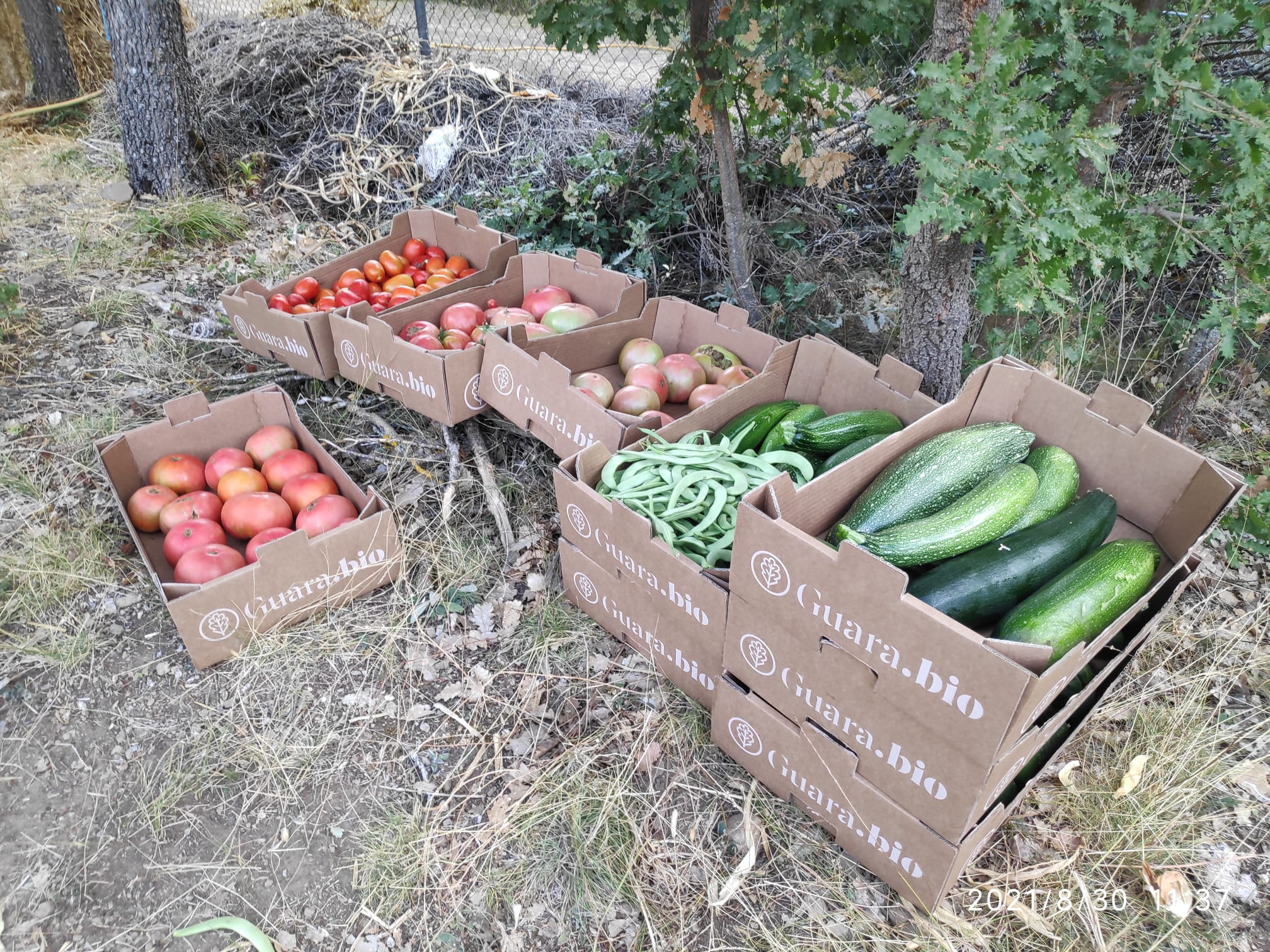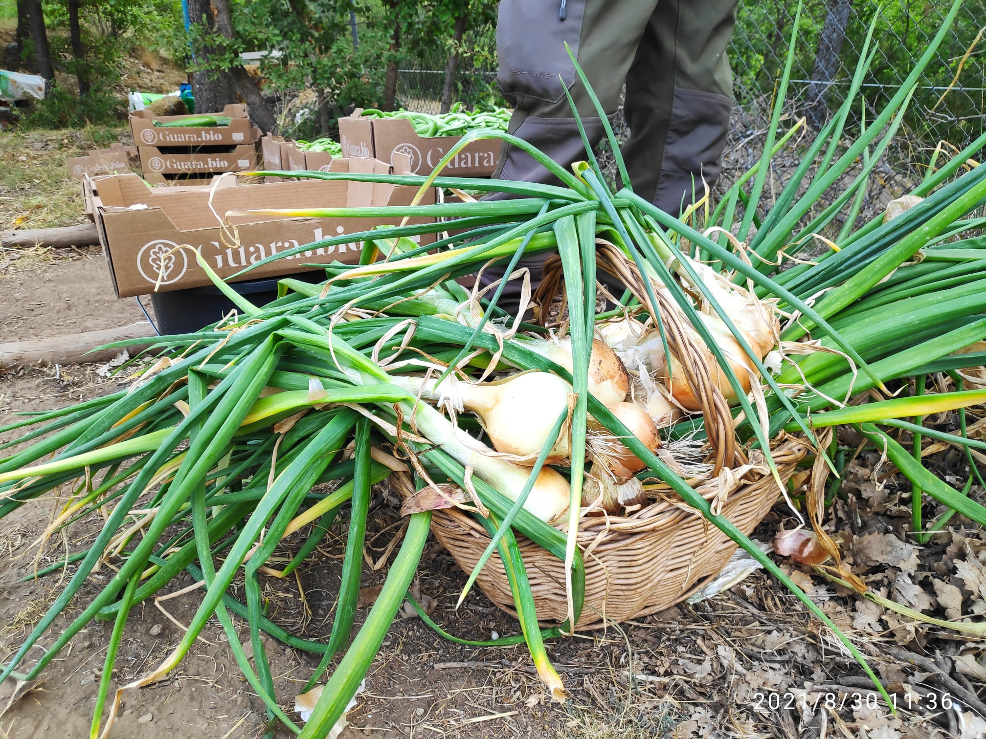 Estos días hemos recolectado tomates, cebollas, judías, calabacines y pepinos. Todo esto lo hemos llevado a la tienda ecológicas Pura Vida, después de que Daniel, su propietario, nos hiciera una visita para conocernos y comer con nosotros.
