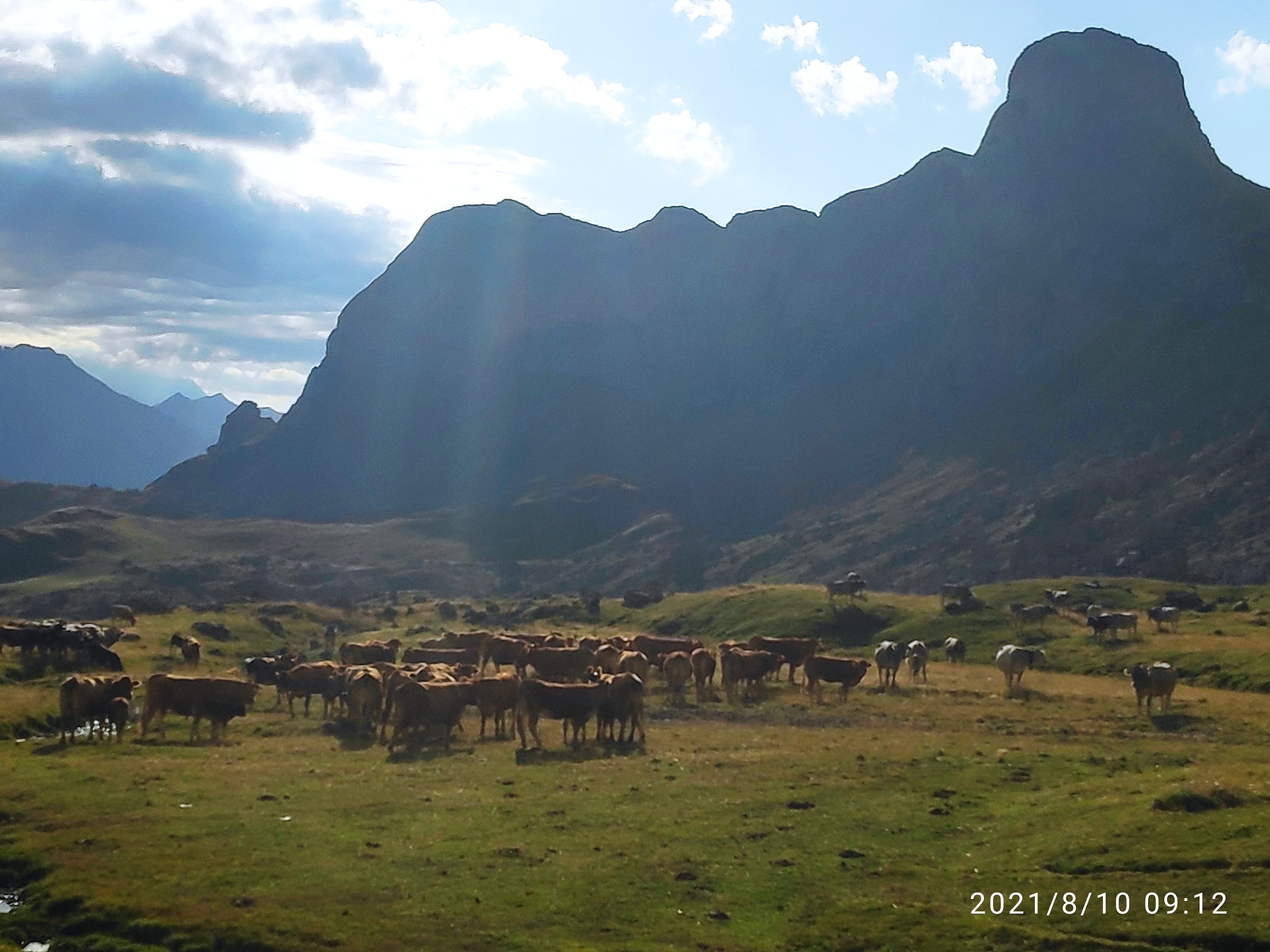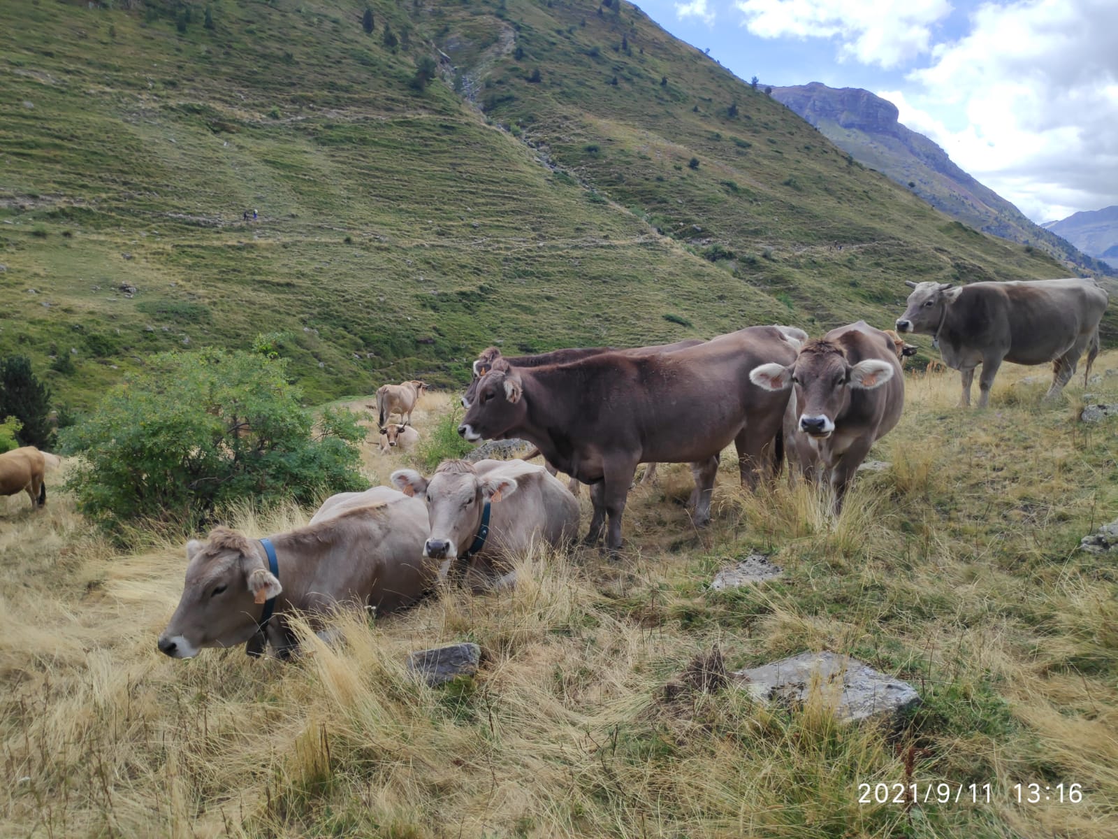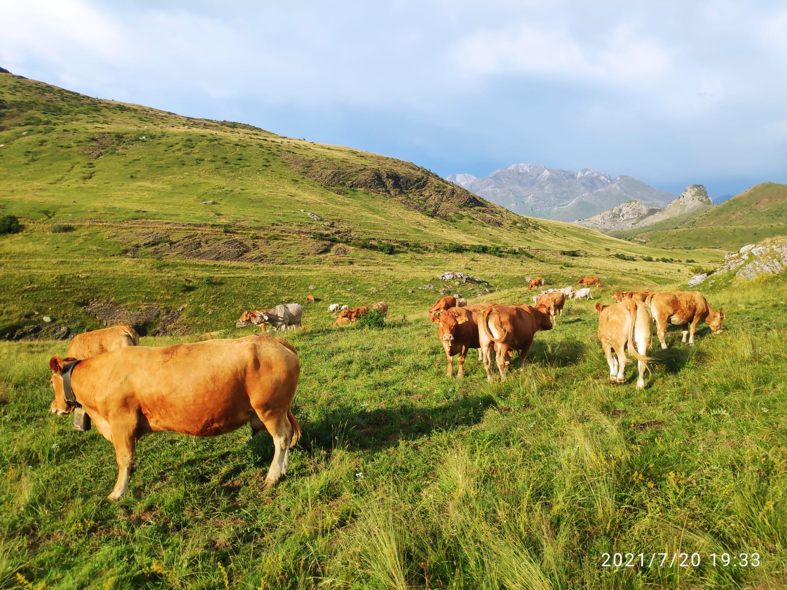 A primeros de verano, coincidiendo con San Pedro, subimos 25 novillas de raza Parda de Montaña y Limusin a Canal Roya, en la zona de Canfranc (Huesca). Las dejamos solas en el puerto por primera vez, y las íbamos a visitar durante el verano, comprobando que estaban siempre muy bien. Para San Miguel, a finales de septiembre, las recogimos y las bajamos a tierras bajas.