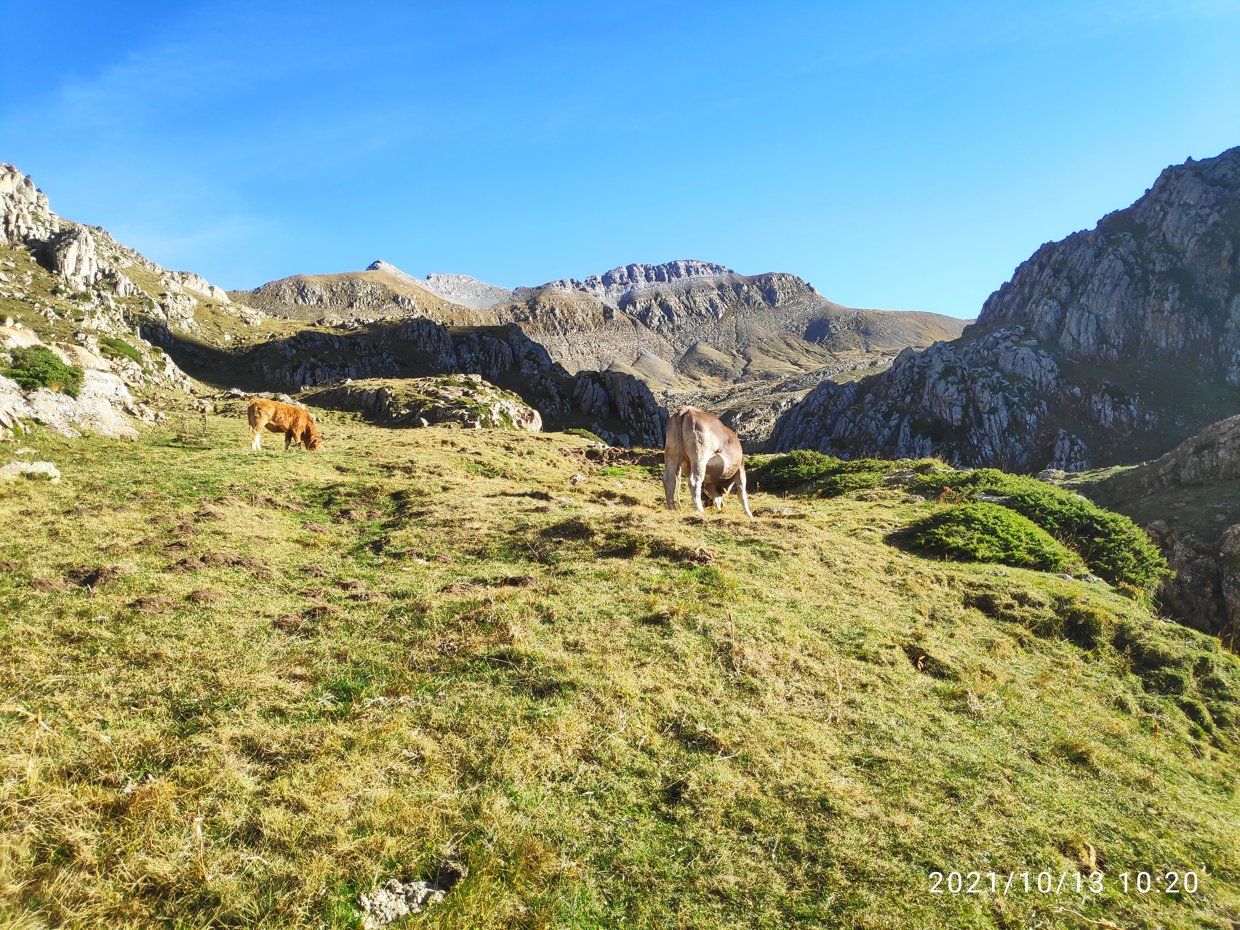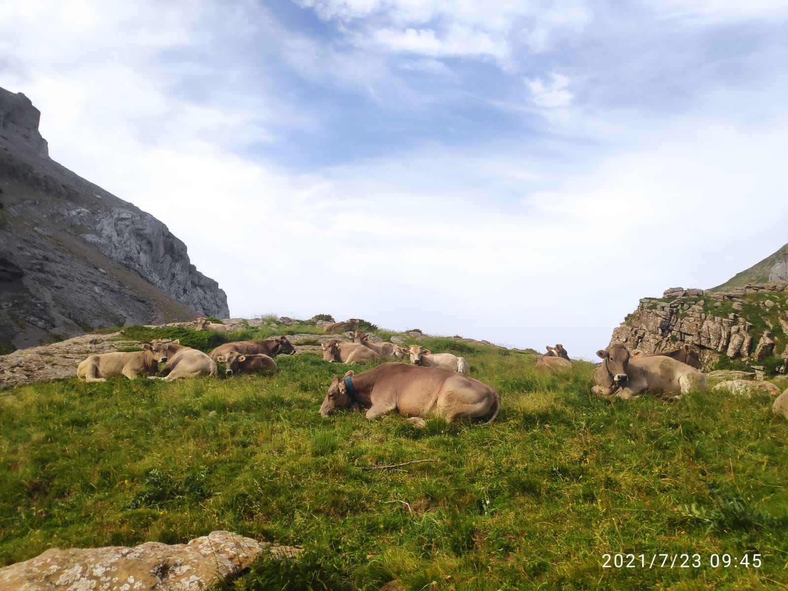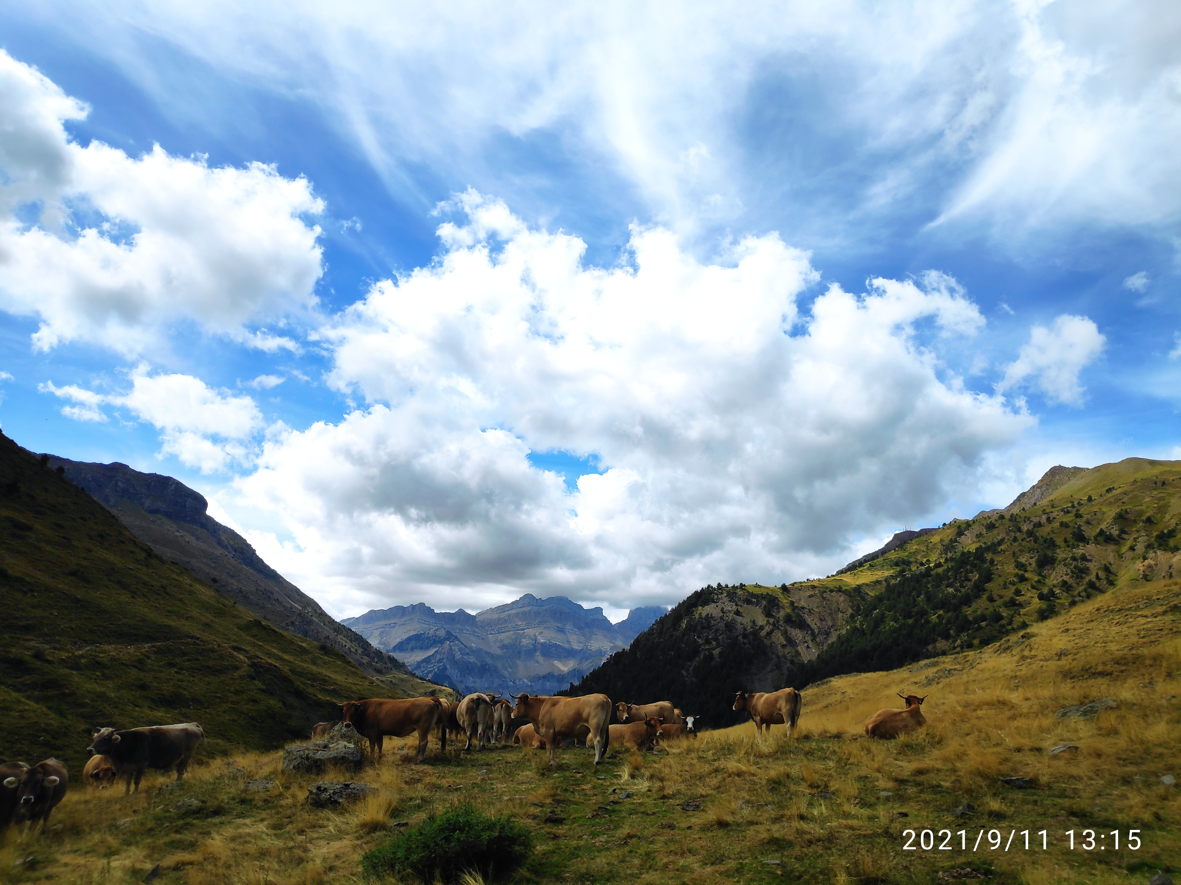A primeros de verano, coincidiendo con San Pedro, subimos 25 novillas de raza Parda de Montaña y Limusin a Canal Roya, en la zona de Canfranc (Huesca). Las dejamos solas en el puerto por primera vez, y las íbamos a visitar durante el verano, comprobando que estaban siempre muy bien. Para San Miguel, a finales de septiembre, las recogimos y las bajamos a tierras bajas.