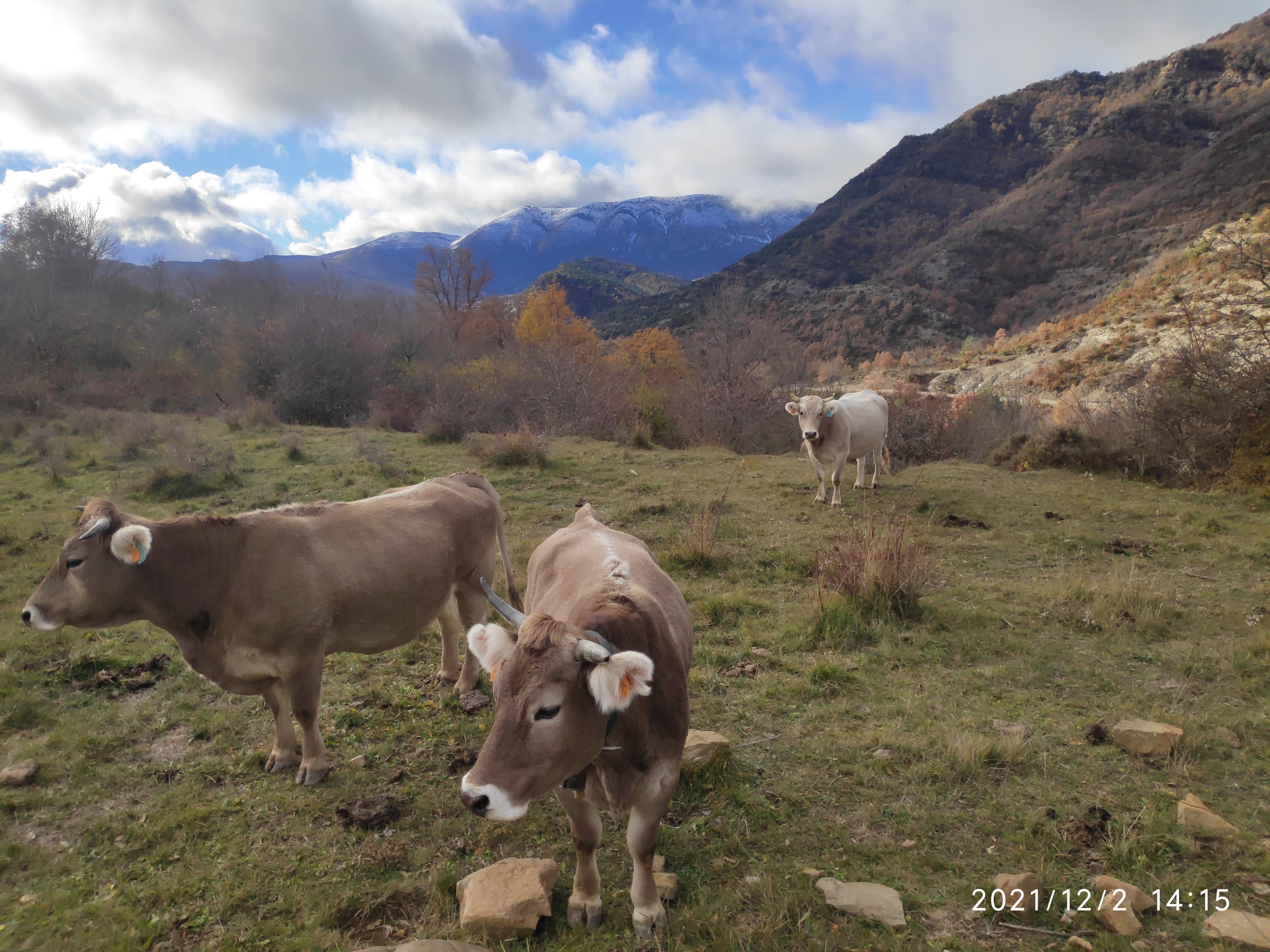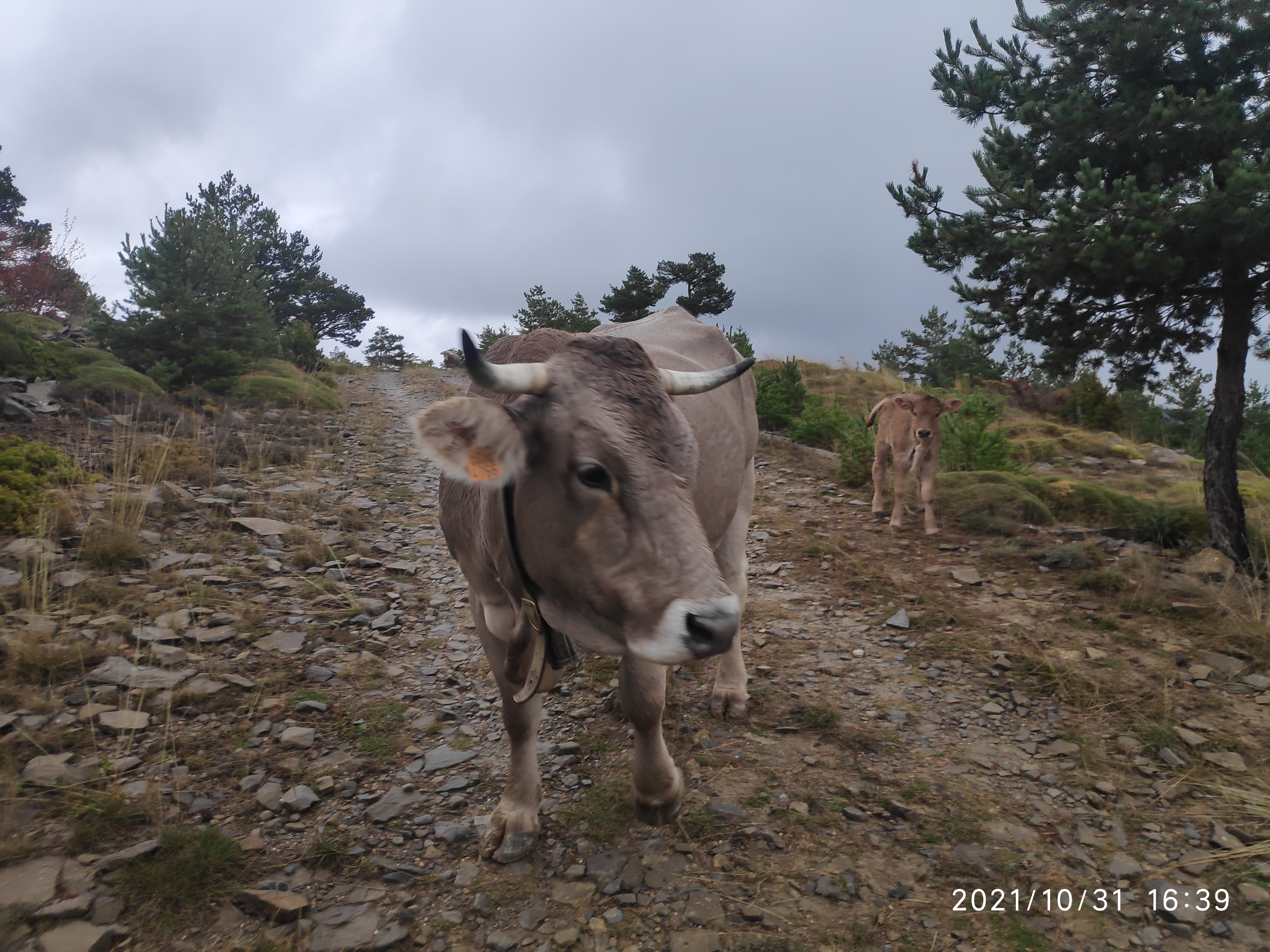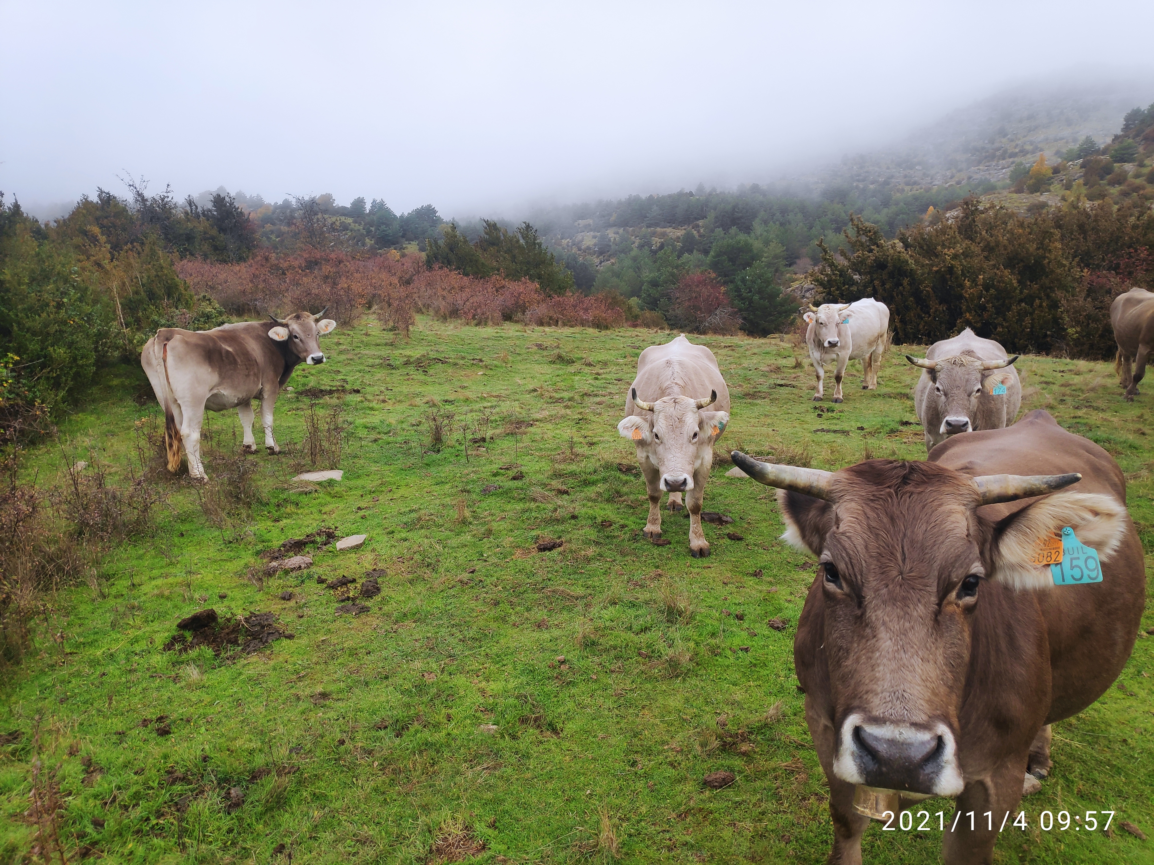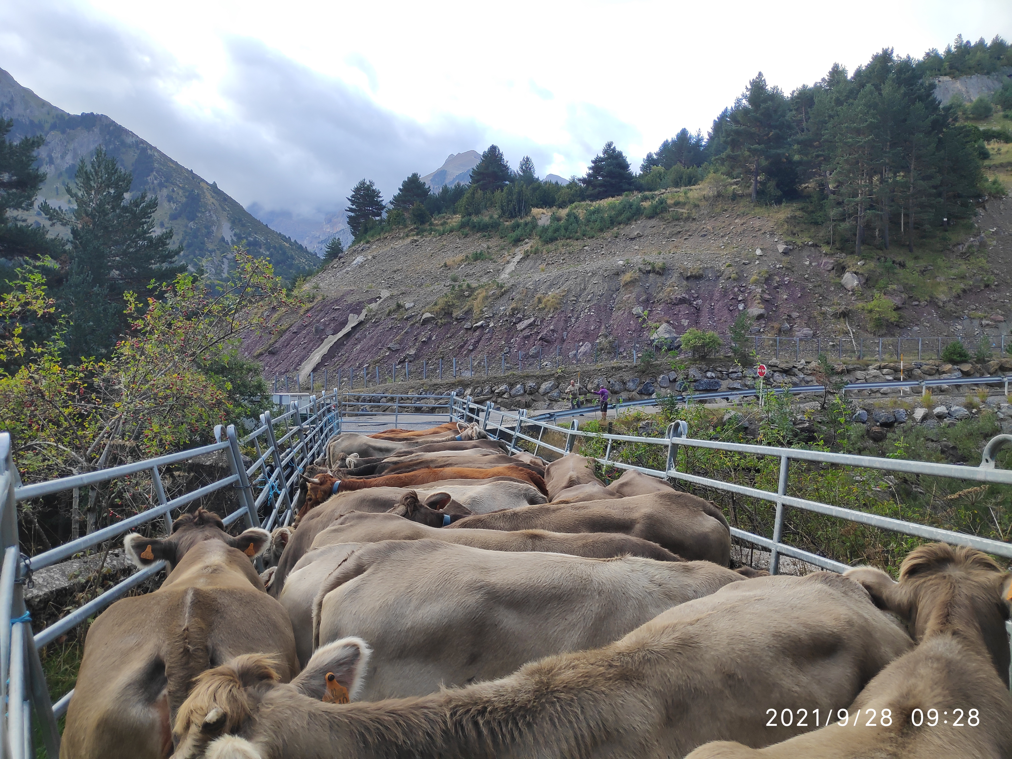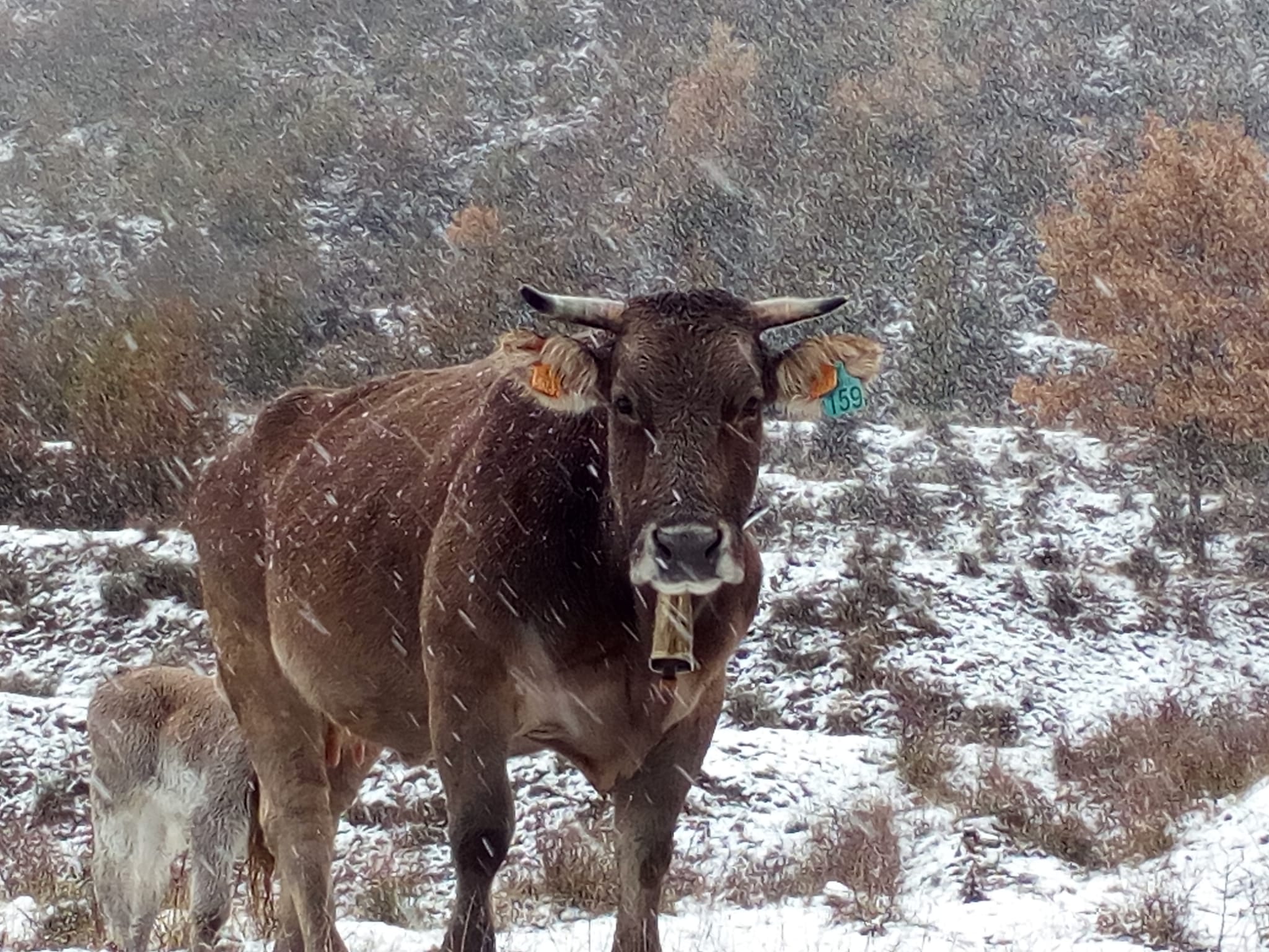 Un rebaño más grande, con 75 vacas y algunos de sus terneros, se llevaron hasta Tramacastilla de Tena (Huesca) para pasar sus vacaciones. El día de la recogida, que las llevamos hasta Pomar de Cinca donde se quedan en invierno, llovía y llegó a nevar.