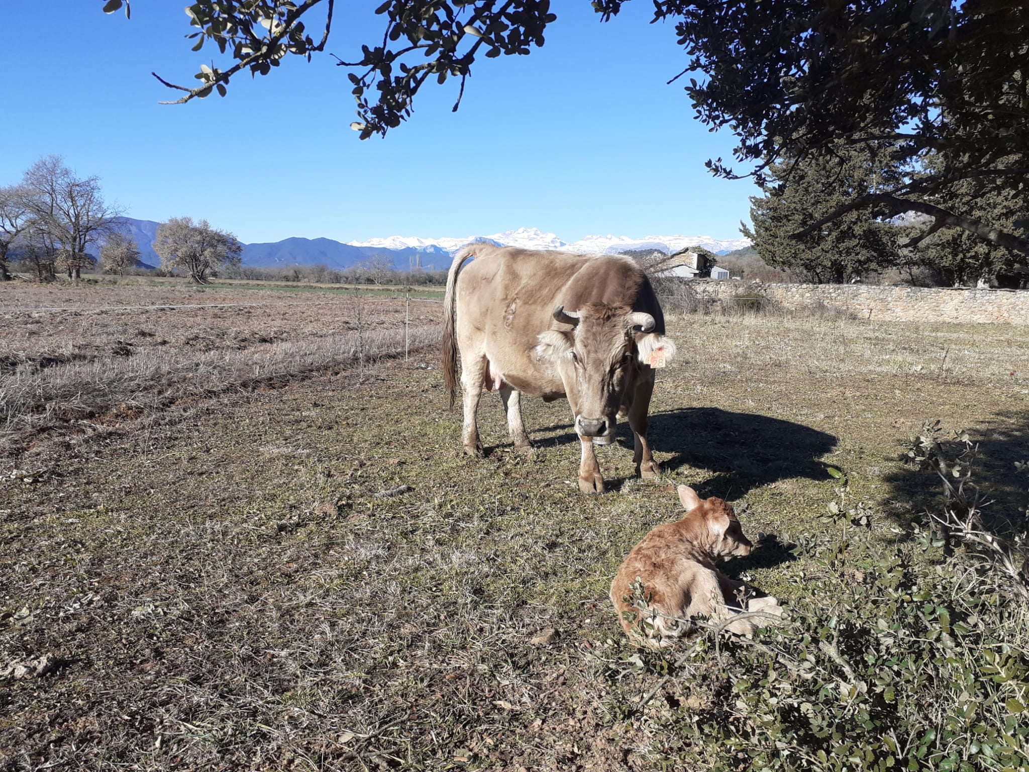 Por otro lado, tenemos un buen número de vacas en Lúsera, que se suben a las montañas cercanas. Aquí el manejo es más sencillo porque tanto las reses como los ganaderos conocemos muy bien este monte. Como están más cerca, podemos controlar como las vacas van pariendo, momento en que las bajamos a Lúsera para llevarlas luego a Gerbe o Pomar de Cinca.