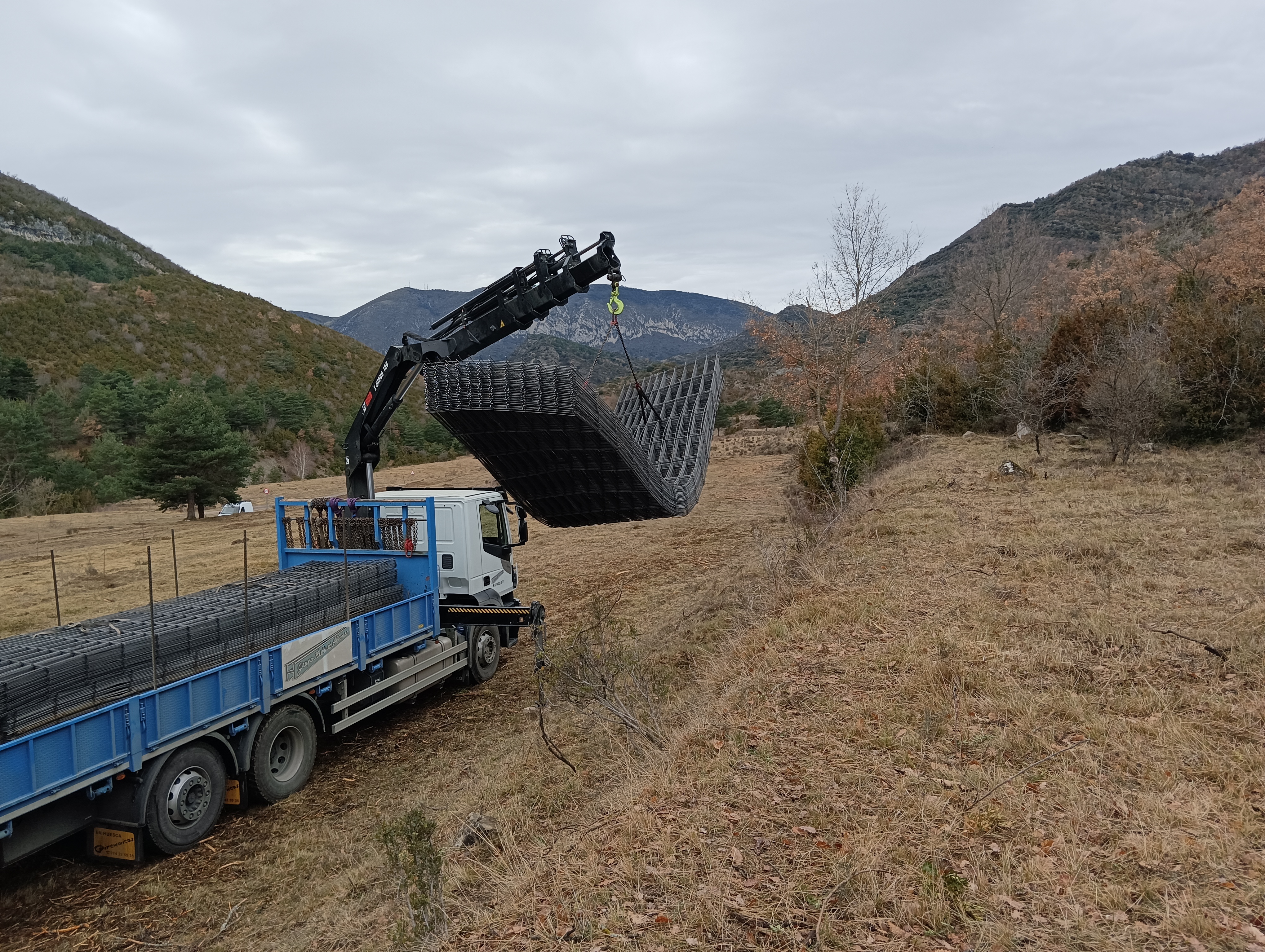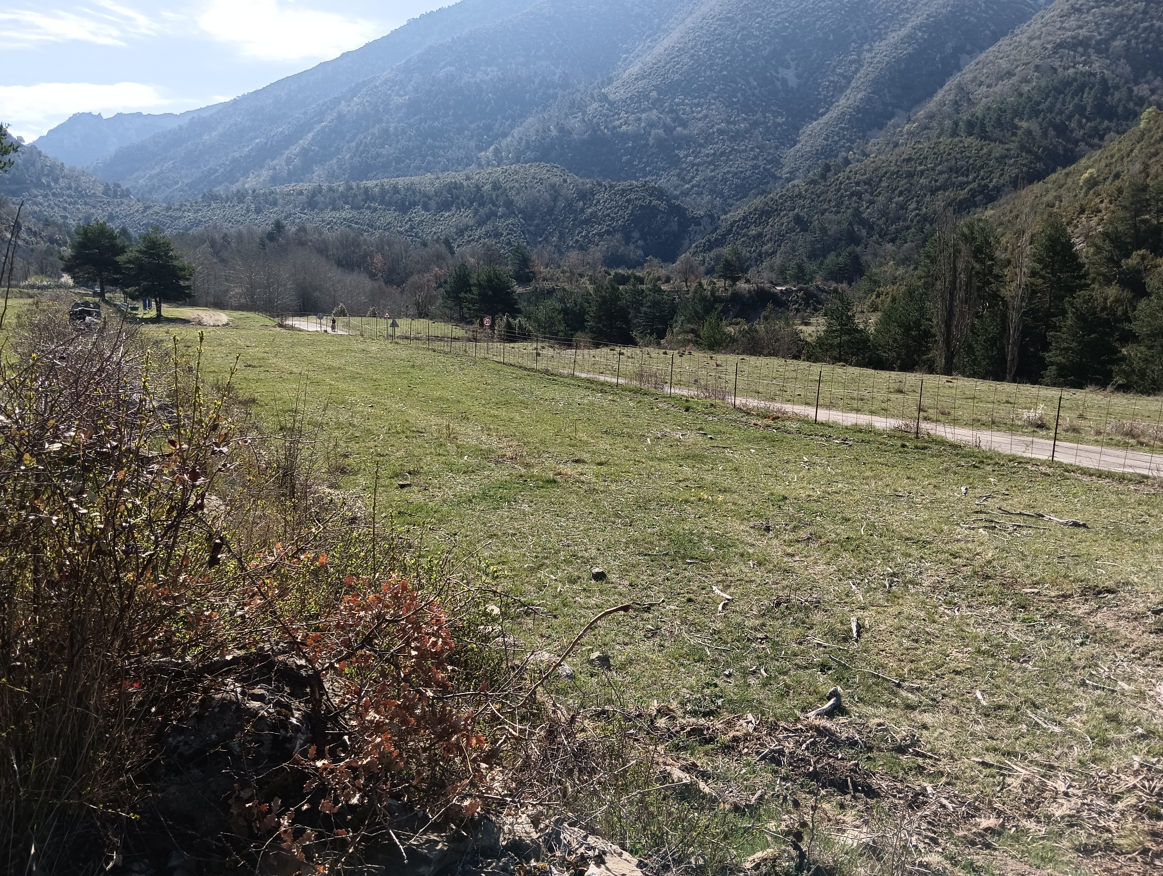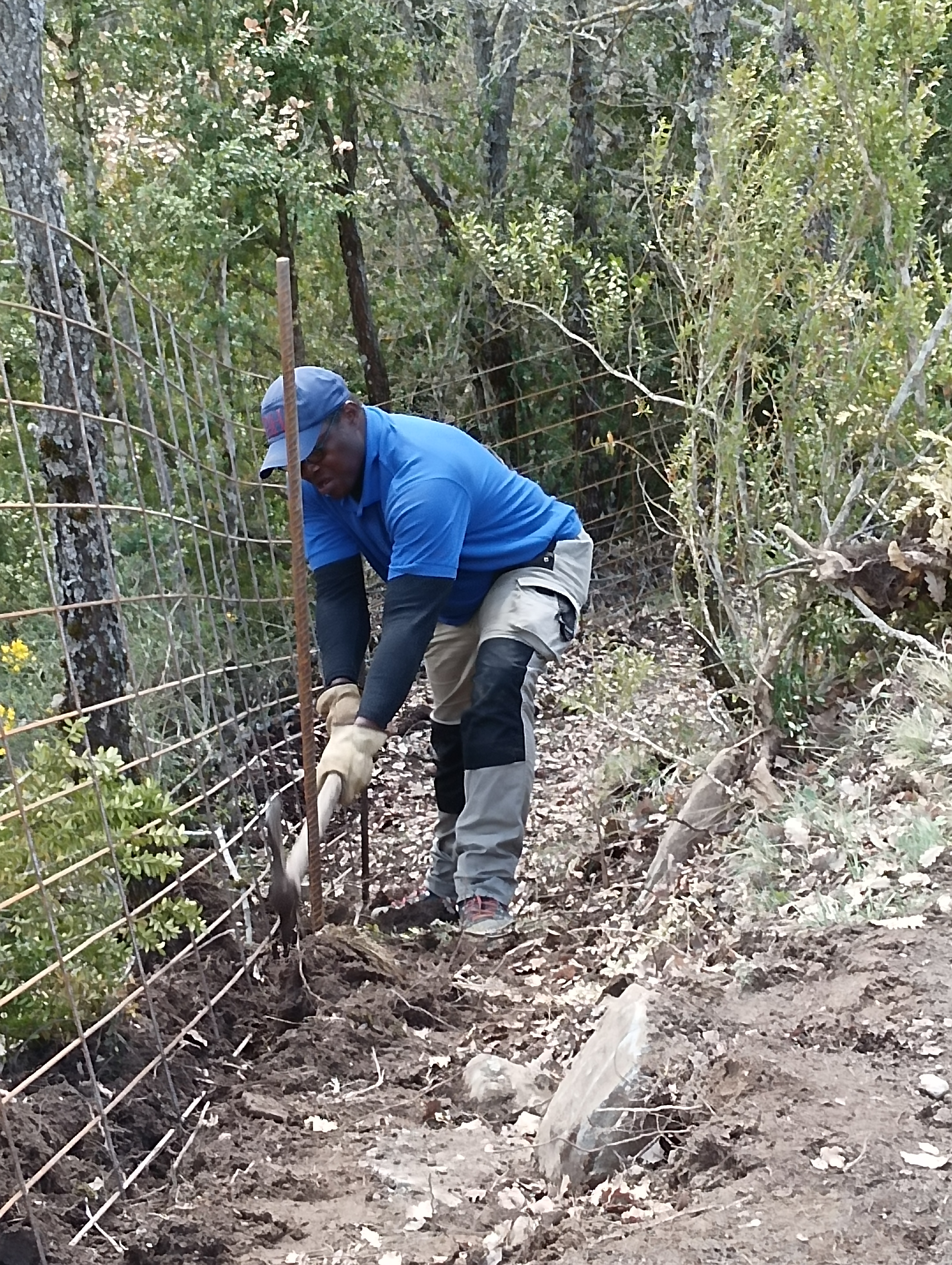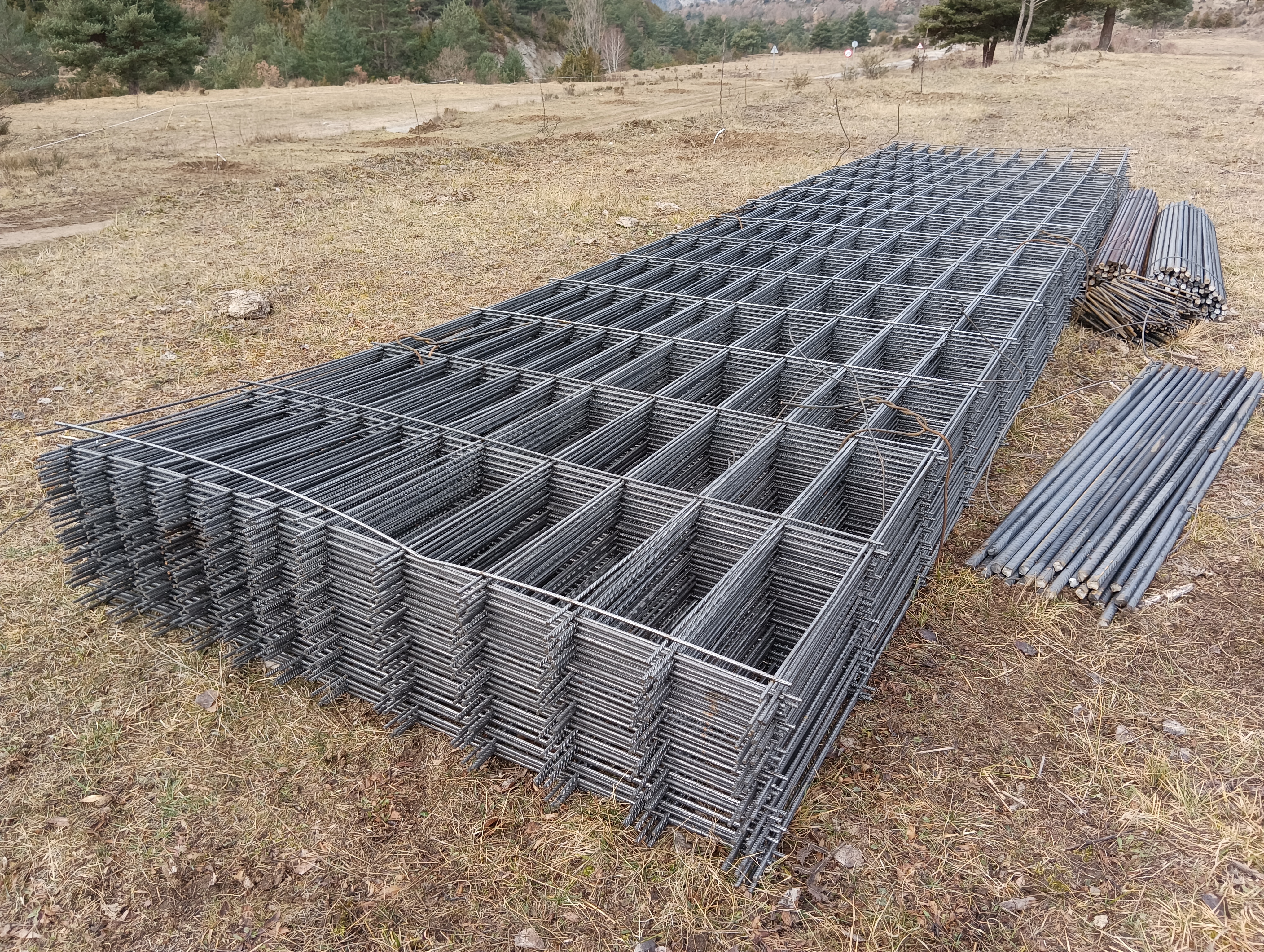 Hemos protegido nuestras nuevas plantas con un cercado, que impedirá el paso de animales silvestres como el corzo, la cabra montés o el jabalí. Estos animales, movidos por la viveza de estas plantas no tardarían producirles daños irreversibles en corteza y hojas cuando comienza el periodo vegetativo de estos frutales. Buscan savia fresca, y los jabalís también estropean las raíces cuando rebuscan en el suelo. También impedirá que nuestras vacas se introduzcan en el nuevo huerto. El perímetro estará protegido con una cerca móvil de hierro anclada al suelo con postes de rea cada 3 metros, con anclajes intercalados en forma de U. Además, hemos hecho manualmente una pequeña zanja para anclar bien los paneles de mallazo ganadero.