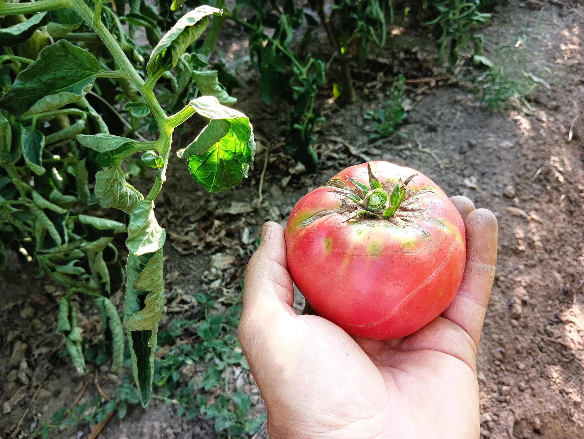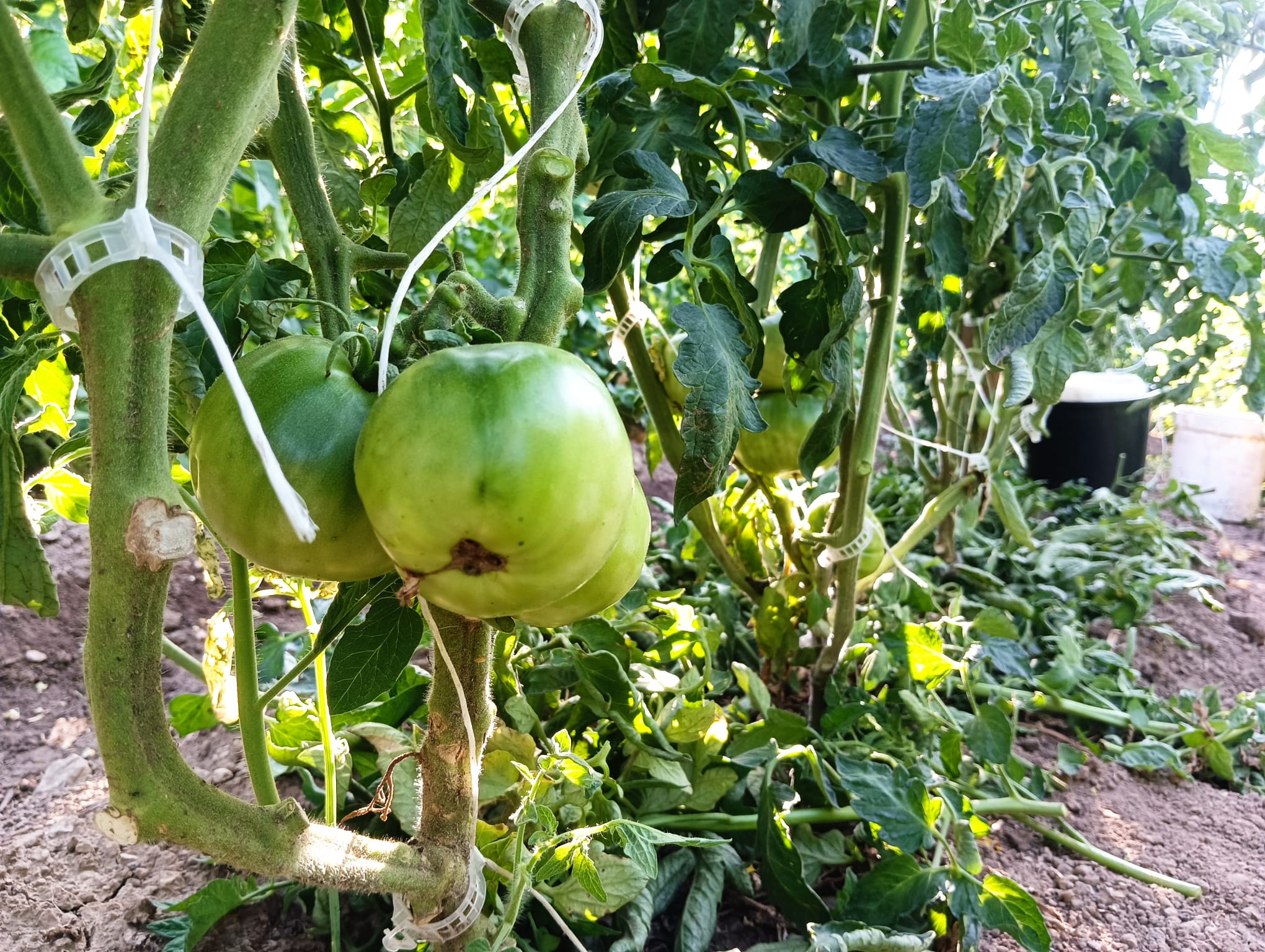Tenemos tomate de pera, con algunos ejemplares de gran calibre, y judietas con vainas que dejaremos crecer hasta los 20 o 24 centímetros para sacar más rendimiento de las plantas, manteniendo su terneza.