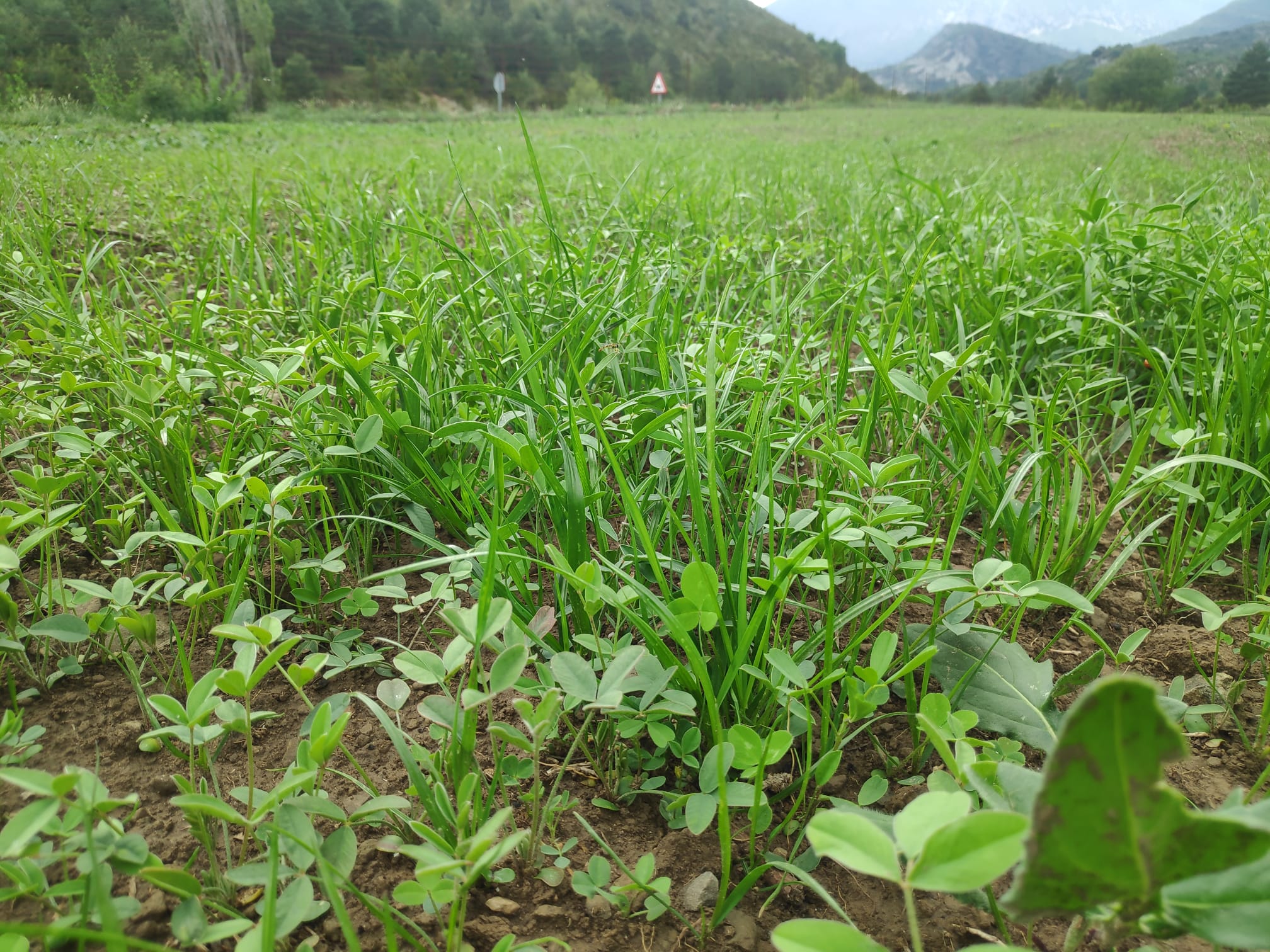 Hemos puesto un pasto ecológico, mezcla de diferentes especies para para darle mayor riqueza, incluyendo trébol, festuca, Ray Grass y esparceta, habitual en este territorio.