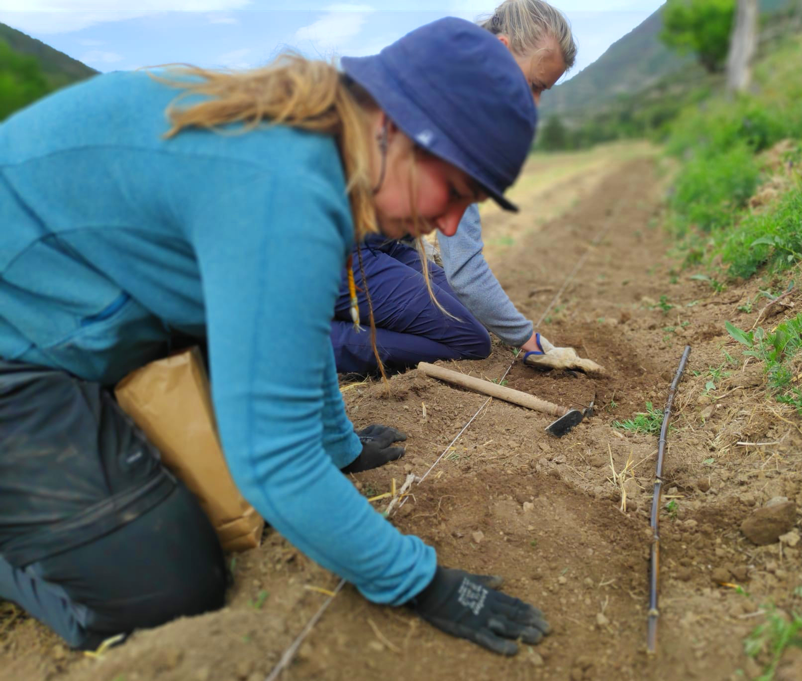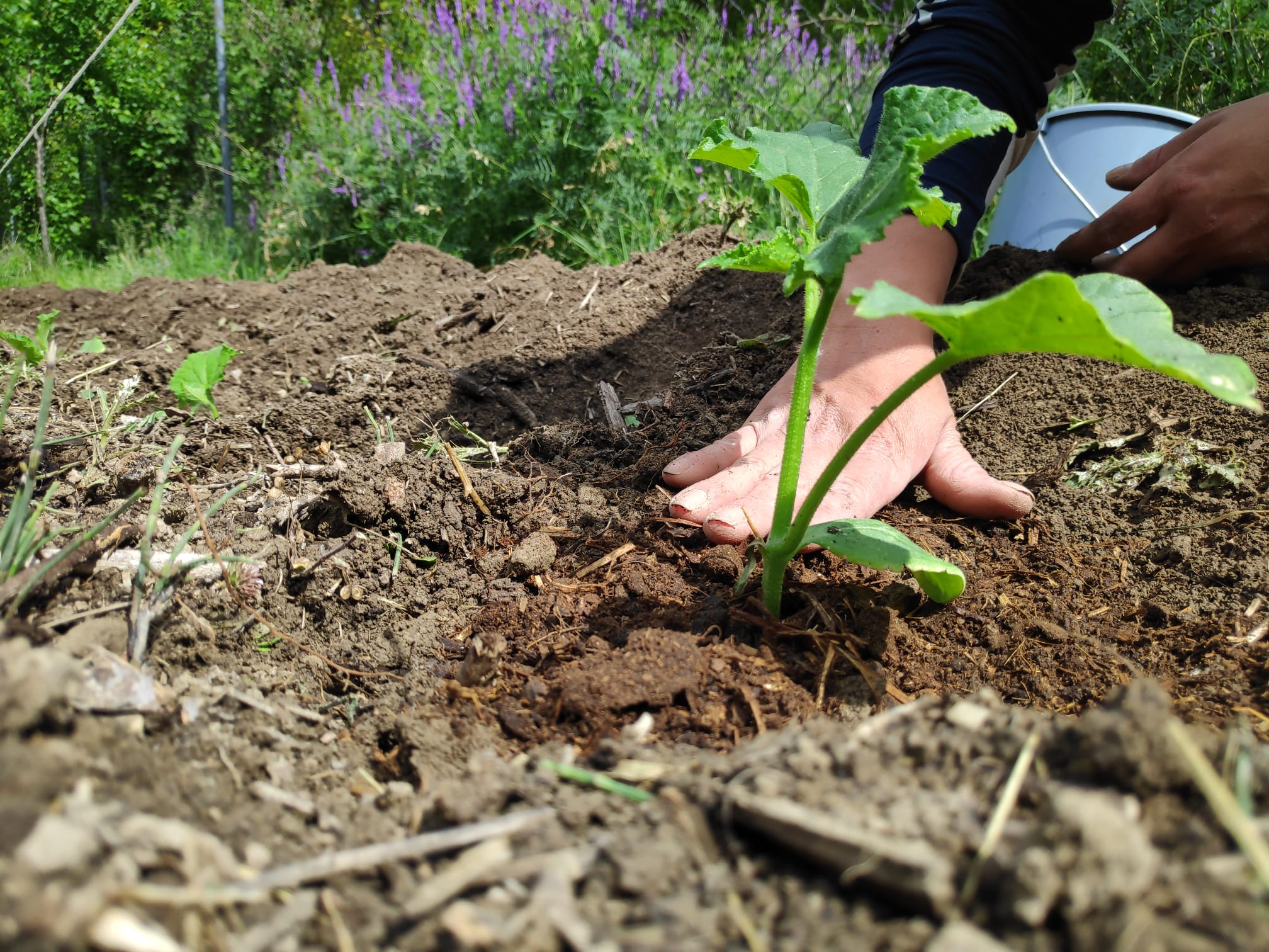 Trabajaron duro en la siembra de los boliches, las calabazas, las zanahorias y las remolachas. David y Rubén también vinieron a ayudarnos. ¡Hemos formado un buen equipo!