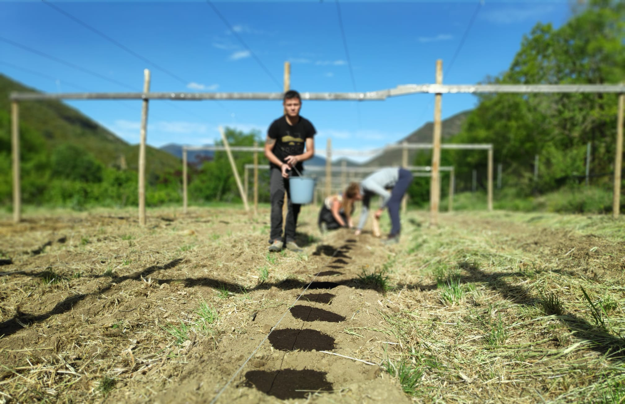 El trabajo continúa. Hemos recogido planta de un vivero ecológico y urge dejar todo a punto. Hemos traído multitud de planteros de calabacín y diferentes variedades de pimiento para ir probando cuáles se aclimatan mejor en Lusera.