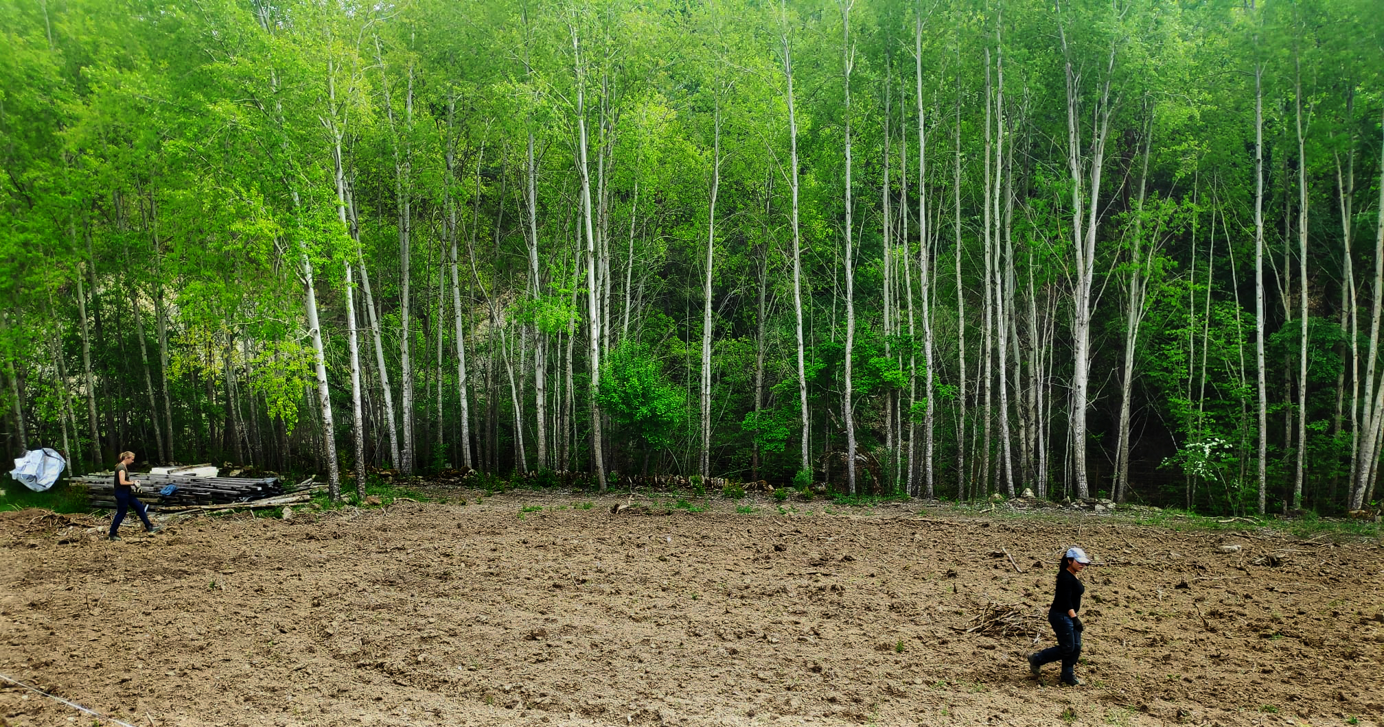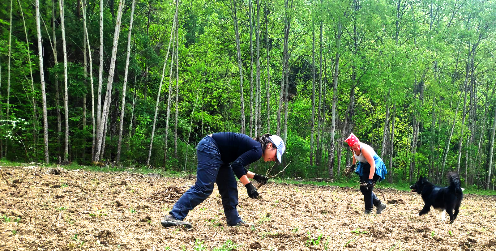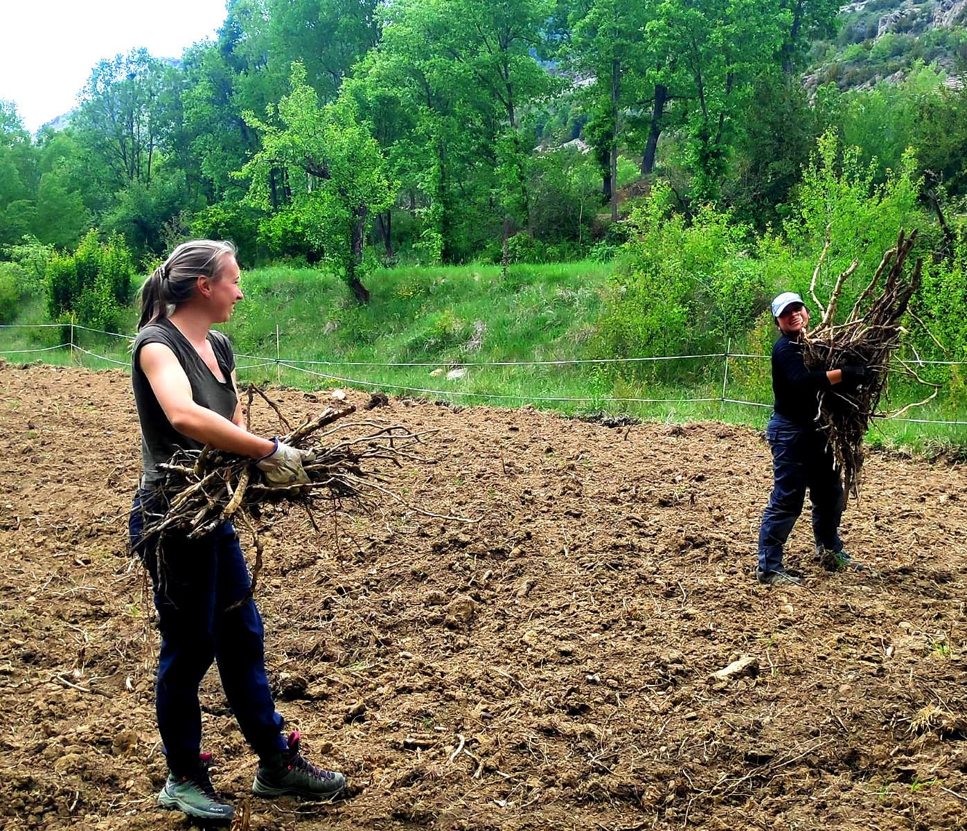 Durante su estancia nos han ayudado muchísimo con la limpieza de raíces de nuestro campo de patatas, a medida que Santiago de Rasal iba pasando el tractor. Lo hemos dejado todo preparado. ¡Hacía más de 60 años que aquí no se sembraban patatas!