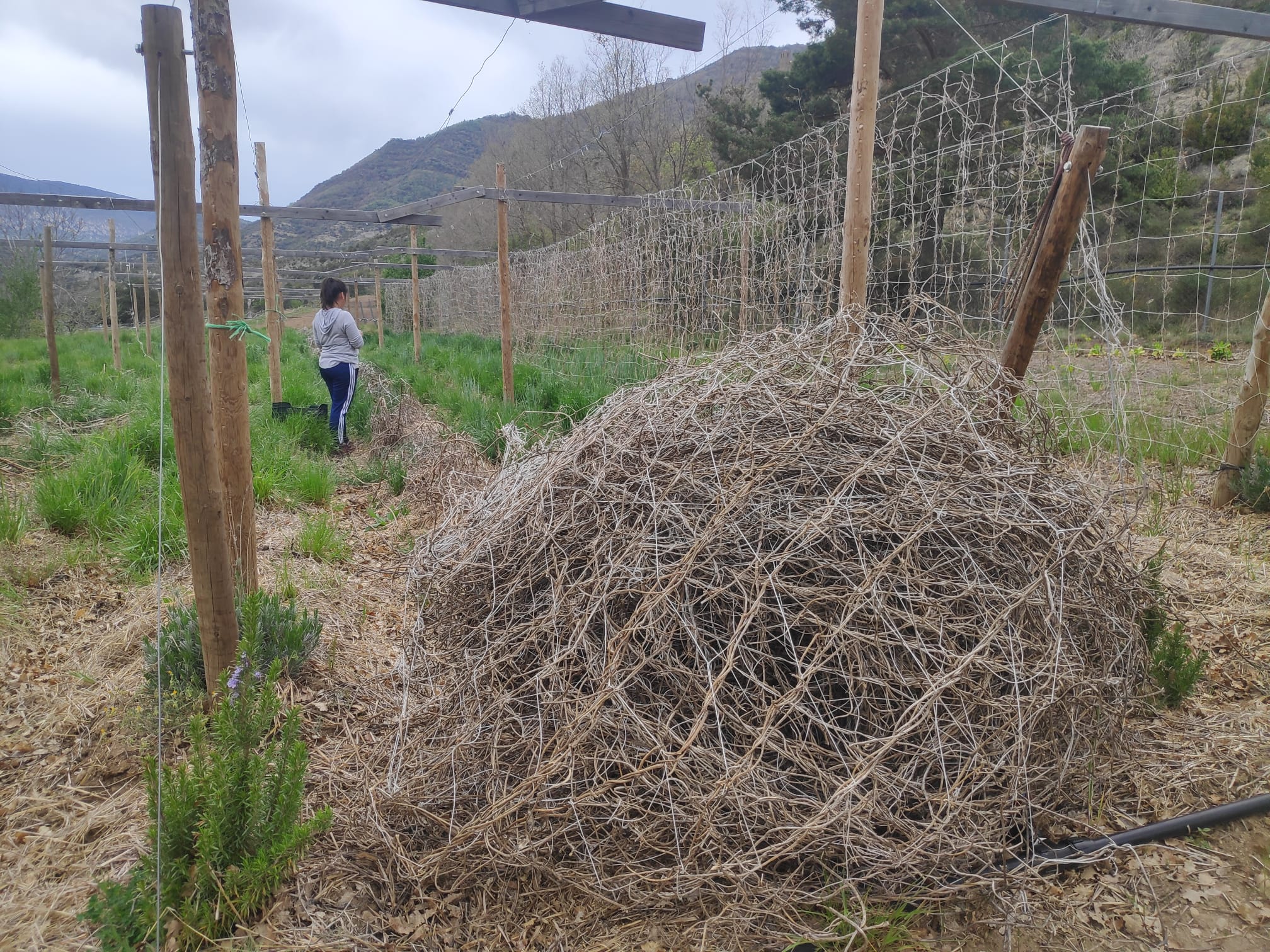 Todo lo limpiamos a mano para evitar el laboreo con máquina, porque de ese modo se respetan las capas del suelo y a todos sus beneficiosos habitantes, como las incansables lombrices. Todo va al compost: es todo orgánico y no hay ningún residuo plástico.