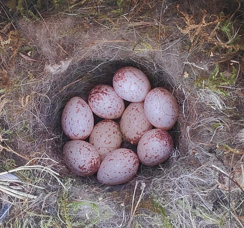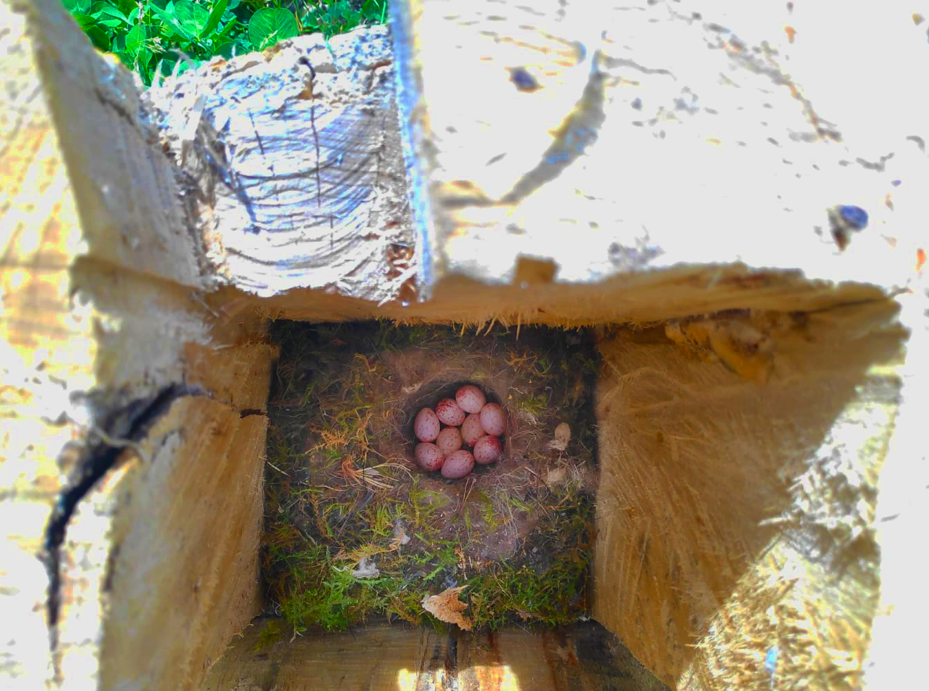 Cada día nos visitan multitud de insectos y aves con los que compartimos espacio. De hecho , en esta caja nido que nos ha regalado Pedro, un simple tronco con un agujero, ha anidado un carbonero común, un ave insectívora que nos va a ayudar a controlar las plagas del huerto. Si te asomas a la caja verás sus huevos. ¡9 nada menos! Pronto daremos la bienvenida a nuestros nuevos vecinos con plumas.