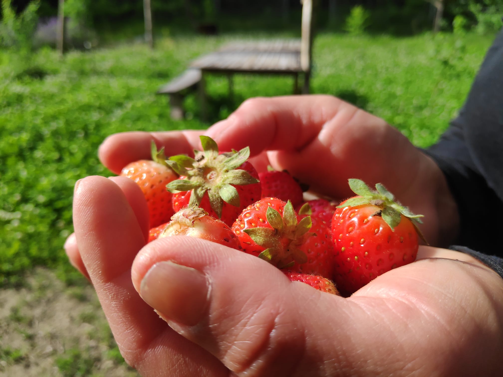 Este mes también ha marcado la recolección de nuestras primeras fresas, de un color rojo brillante y un dulzor inigualable. ¡Qué satisfacción comer una fresa fresca y jugosa, que hemos cuidado y visto día a día!