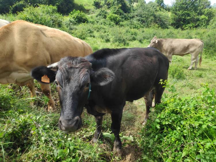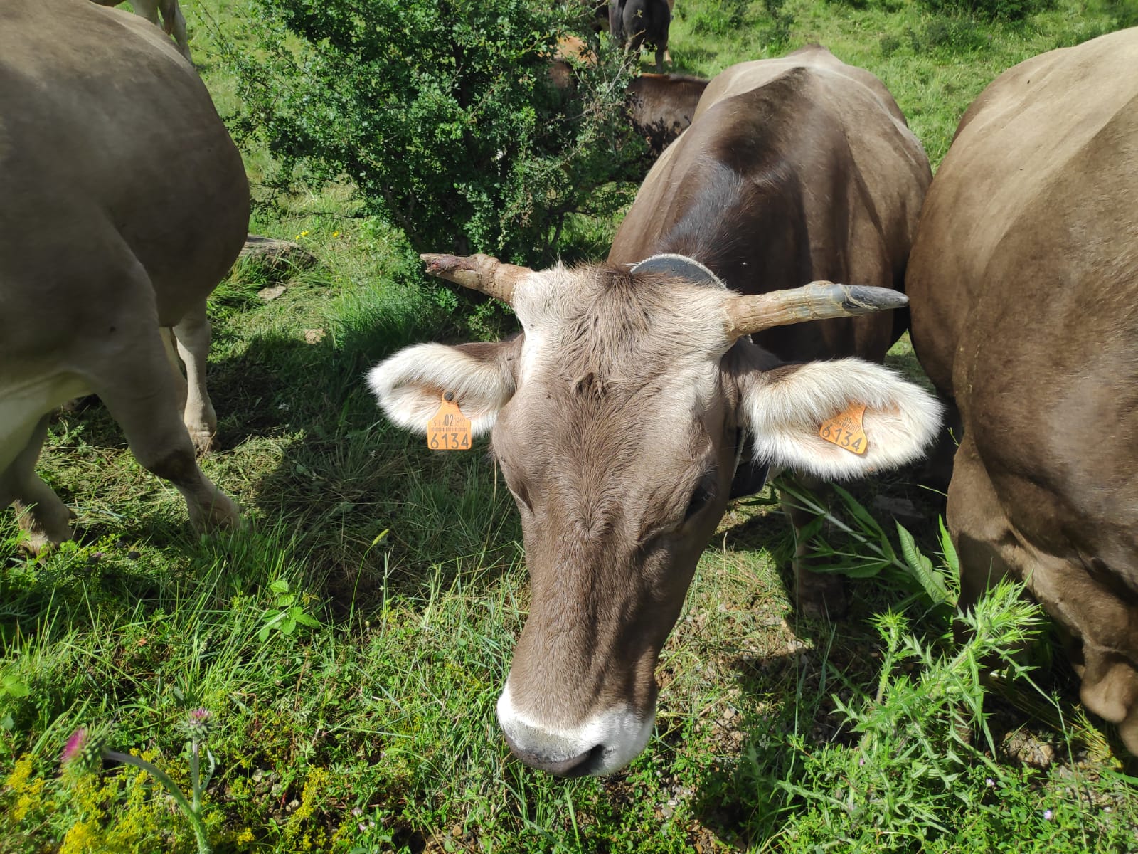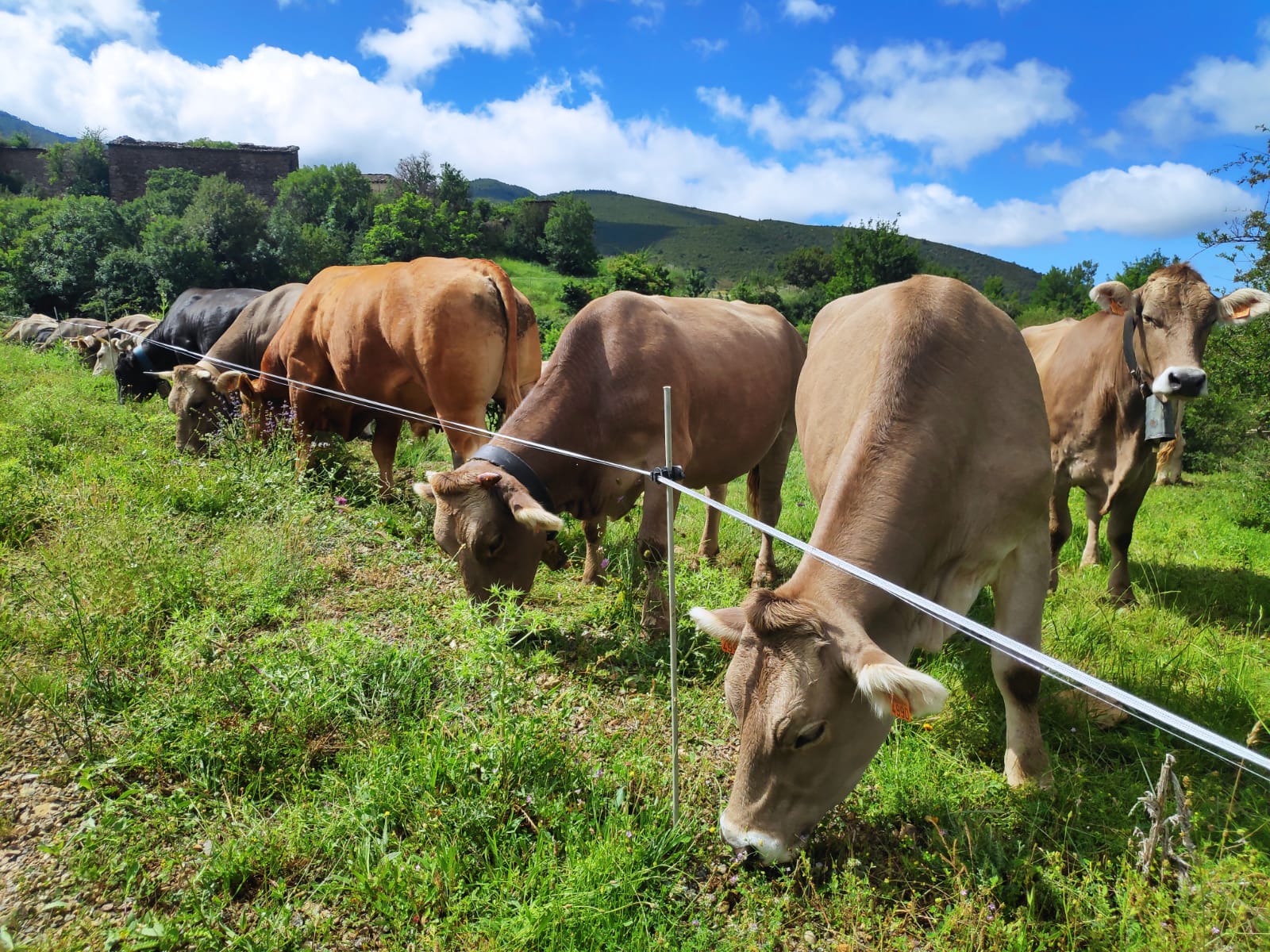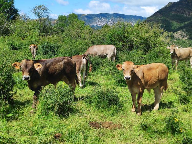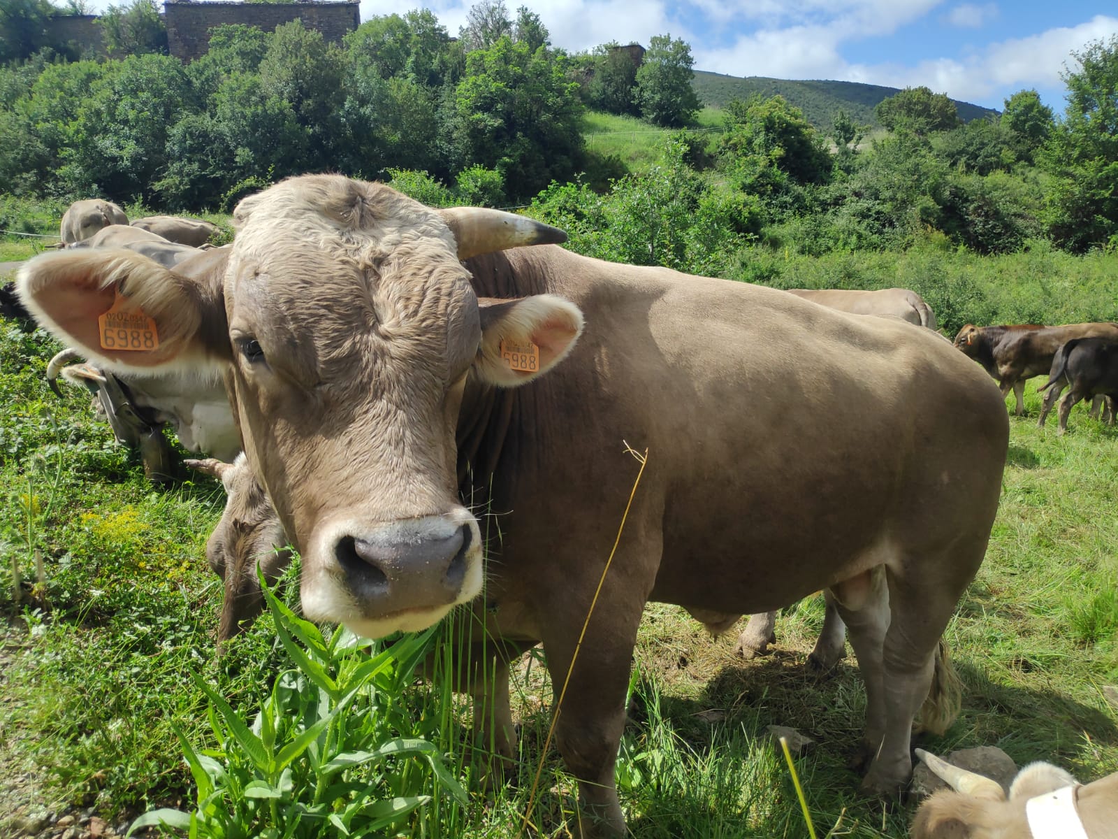 Con las lluvias del final de la primavera, el monte se ha cubierto de un manto verde y jugoso donde las vacas pacen a sus anchas, rodeadas de flores de colores y muchos insectos, algunos molestos como las moscas, otros delicados y hermosos como las mariposas. Aquí hay de todos los colores. Una variedad tan enorme de mariposas nos da la medida de la calidad del aire y de la tierra en estos montes, pues son tremendamente sensibles a los pesticidas.
