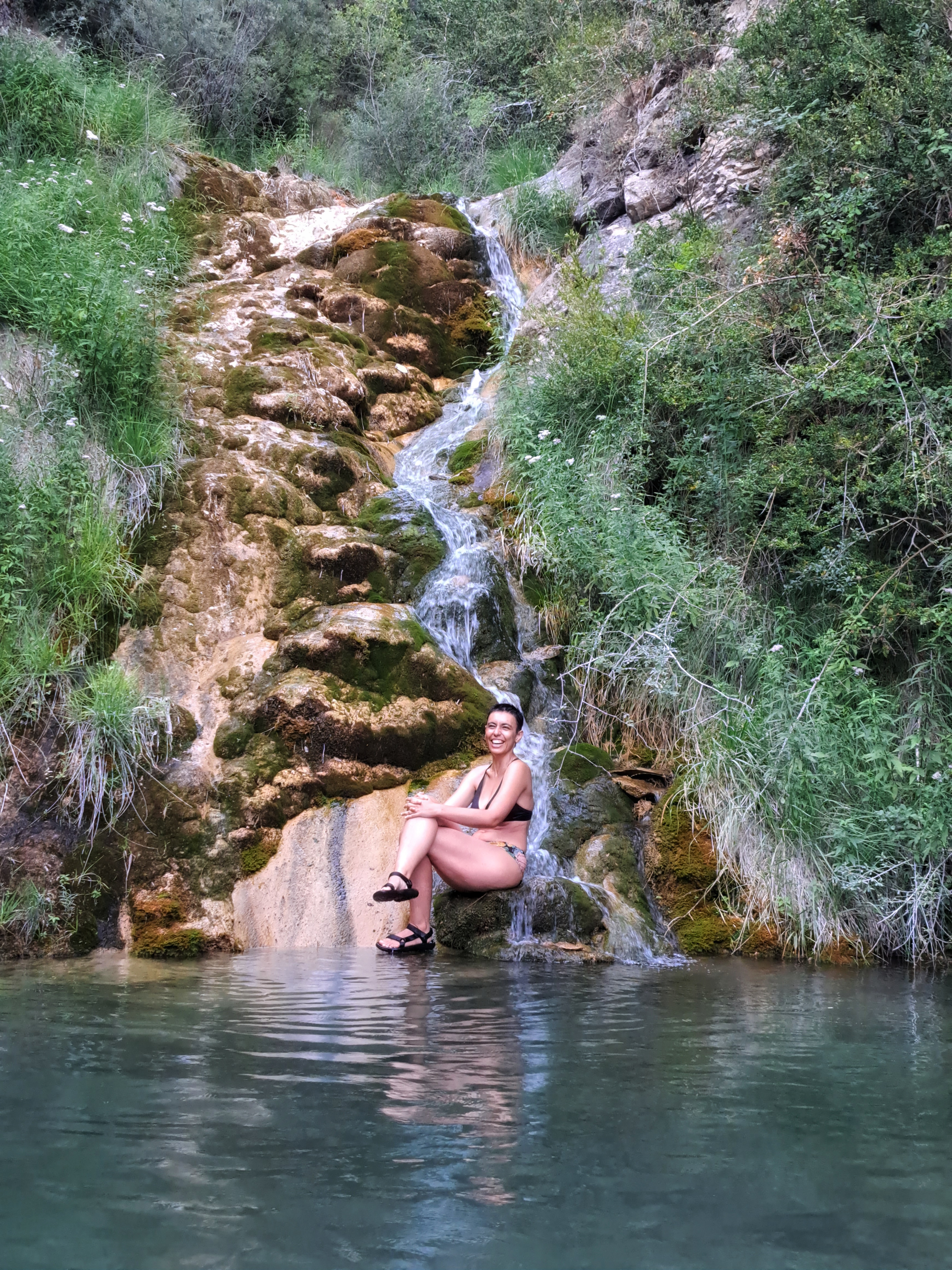 Para relajarnos y recargar energías nos hemos ido a bañar a las refrescantes pozas de aguas cristalinas que oculta la Sierra de Guara. ¡Qué belleza natural nos rodea!