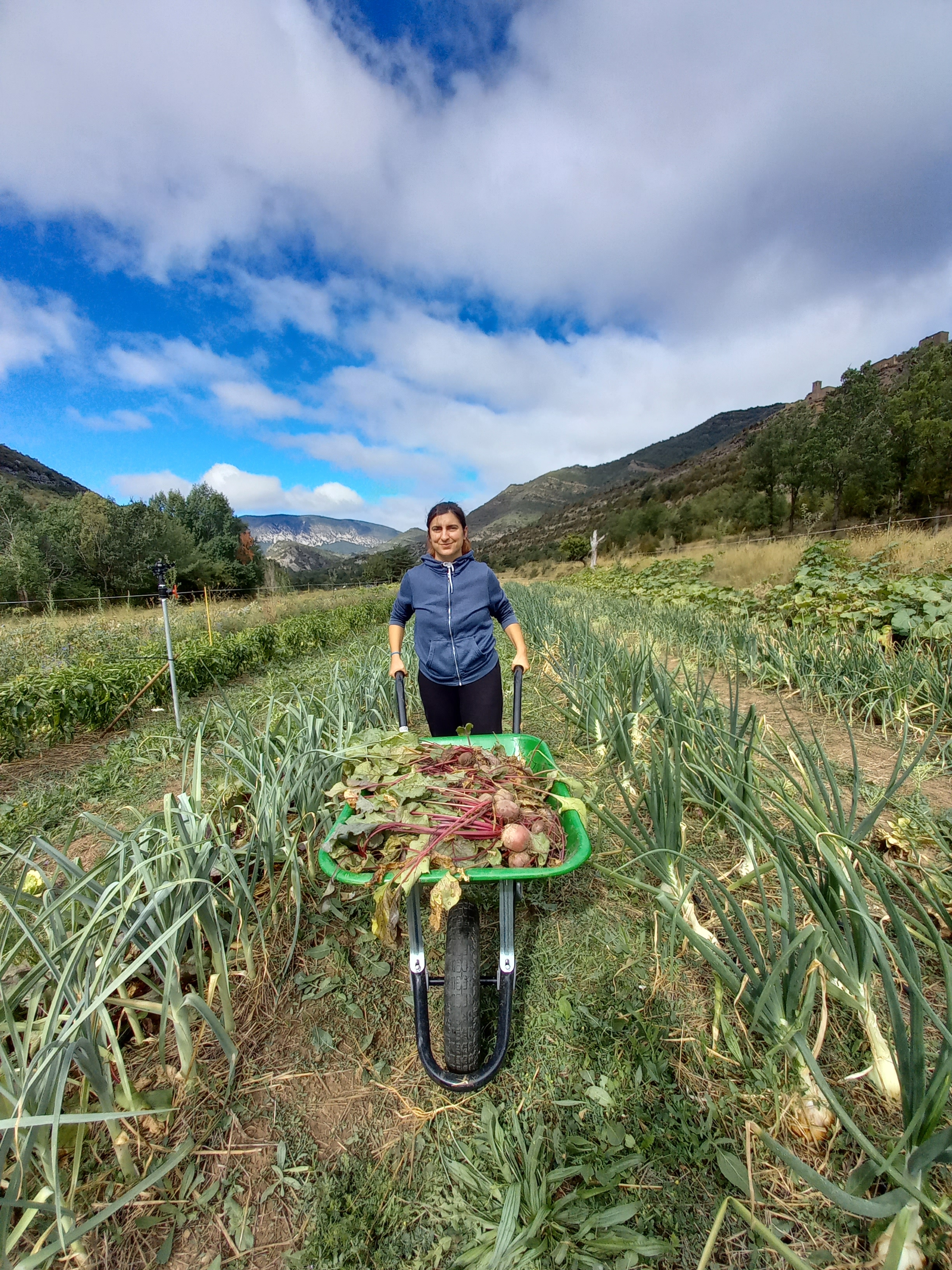 Afortunadamente este mes hemos dado la bienvenida a Víctor y Mercedes, quienes han viajado desde Córdoba para unirse a nosotros y ayudarnos con las tareas de recolección. Seguramente vinieron esperando encontrar temperaturas más agradables que en Andalucía, pero la ola de calor tampoco nos ha dado tregua en el Prepirineo.