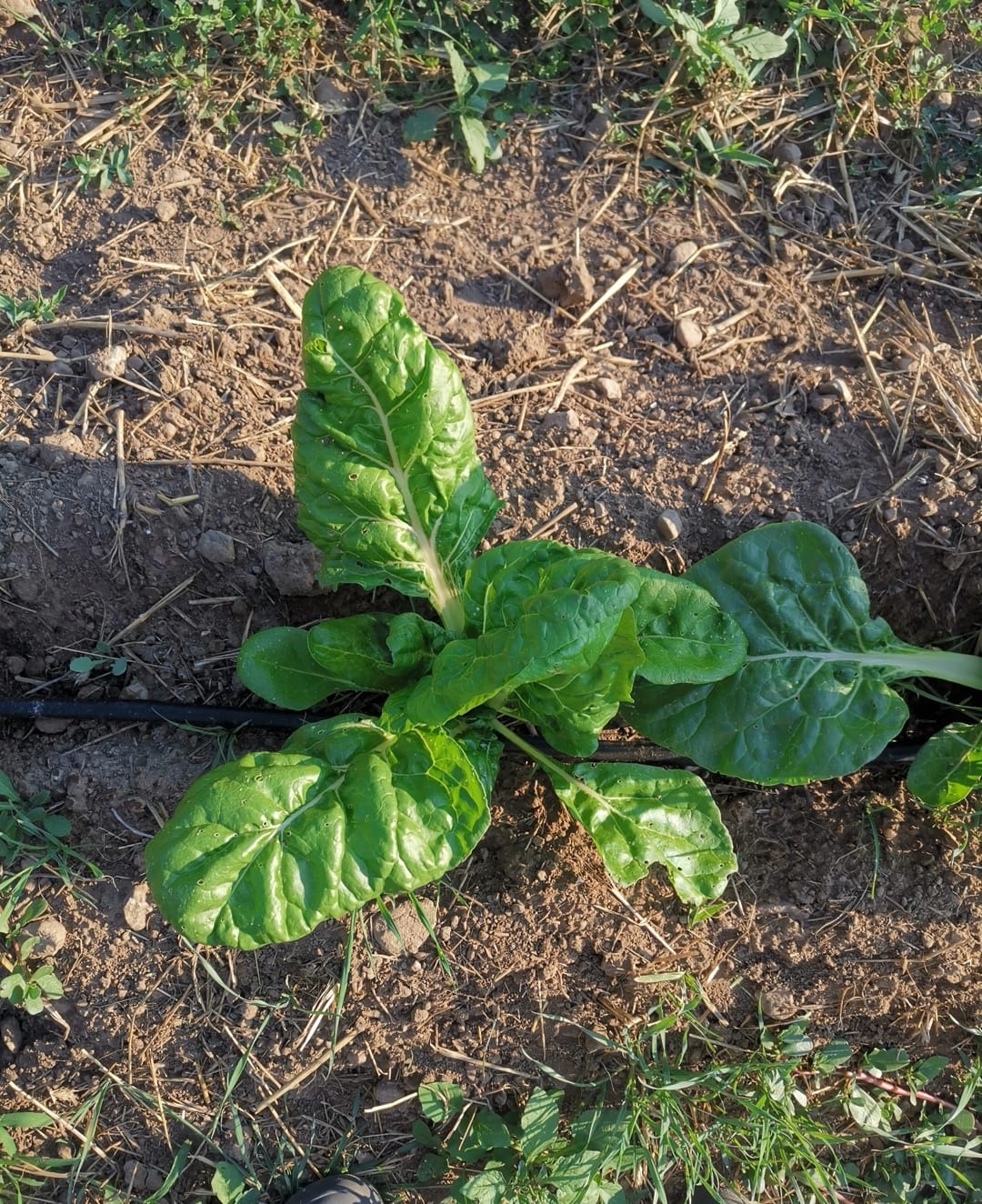 Aunque las acelgas y los cardos aún son pequeños, ya podemos ver los primeros calabacines emergiendo, y las tomateras han empezado a florecer, llenando el aire con su característico aroma a verde intenso.