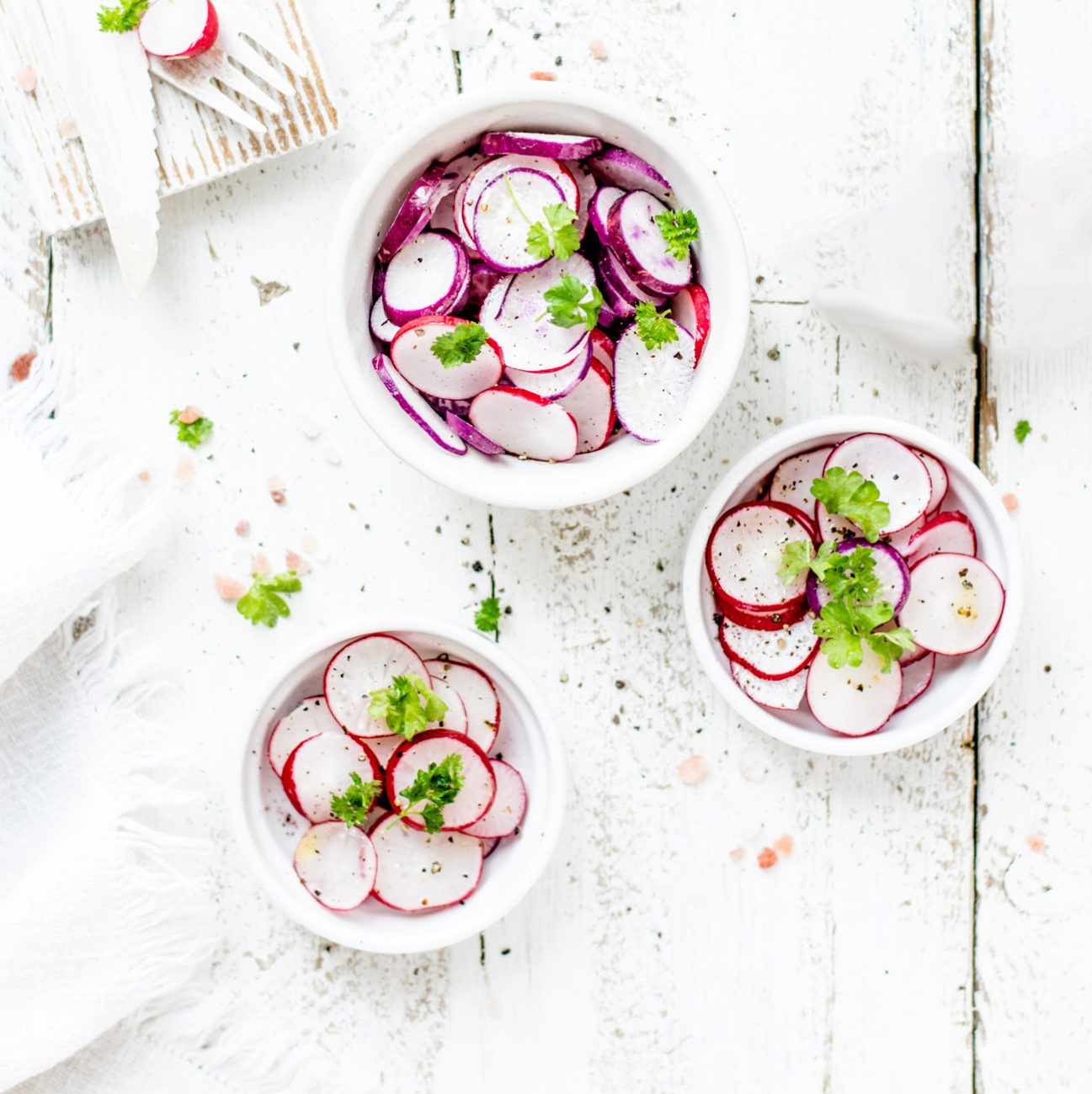 ¿A que el rábanito es un interesante ingrediente para tus ensaladas? Con mezclum, queso fresco, maíz dulce y una vinagreta de mostaza y miel estarán deliciosos.