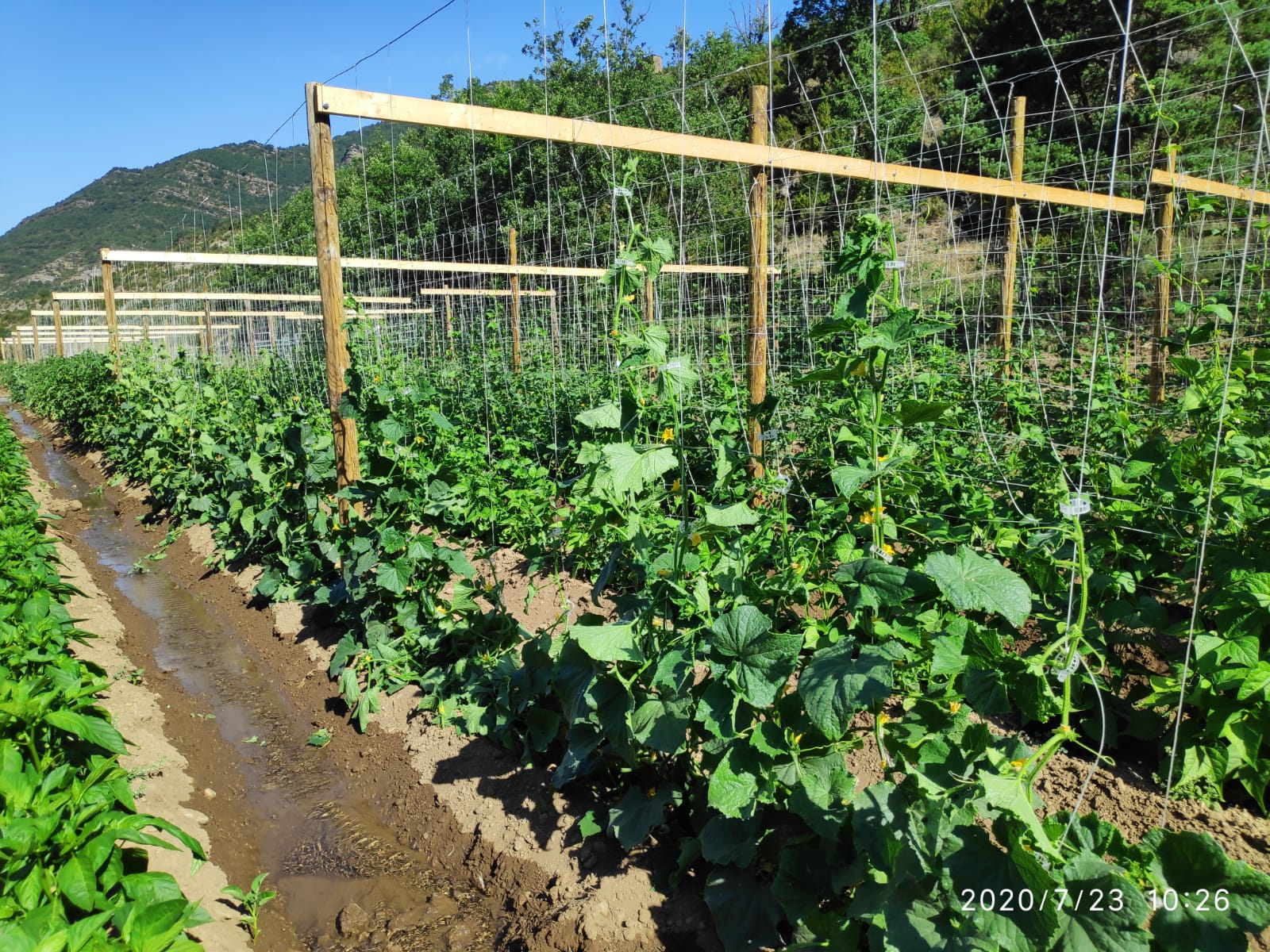 Para que crezcan así de sanas les hemos dedicado muchos cuidados ya que son una variedad muy frágil. Necesitan sol directo, agua suficiente no en exceso y un sustrato mullido con un acolchado orgánico con el que controlamos las hierbas y mantenemos la humedad y la aireación del suelo. Además necesitan tutores de unos 2 metros para que puedan ir enrollándose en ellos a medida que crecen.